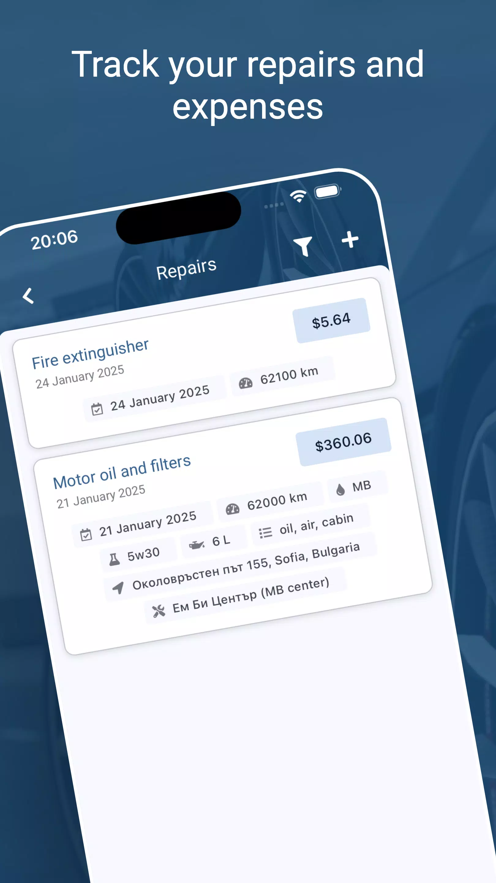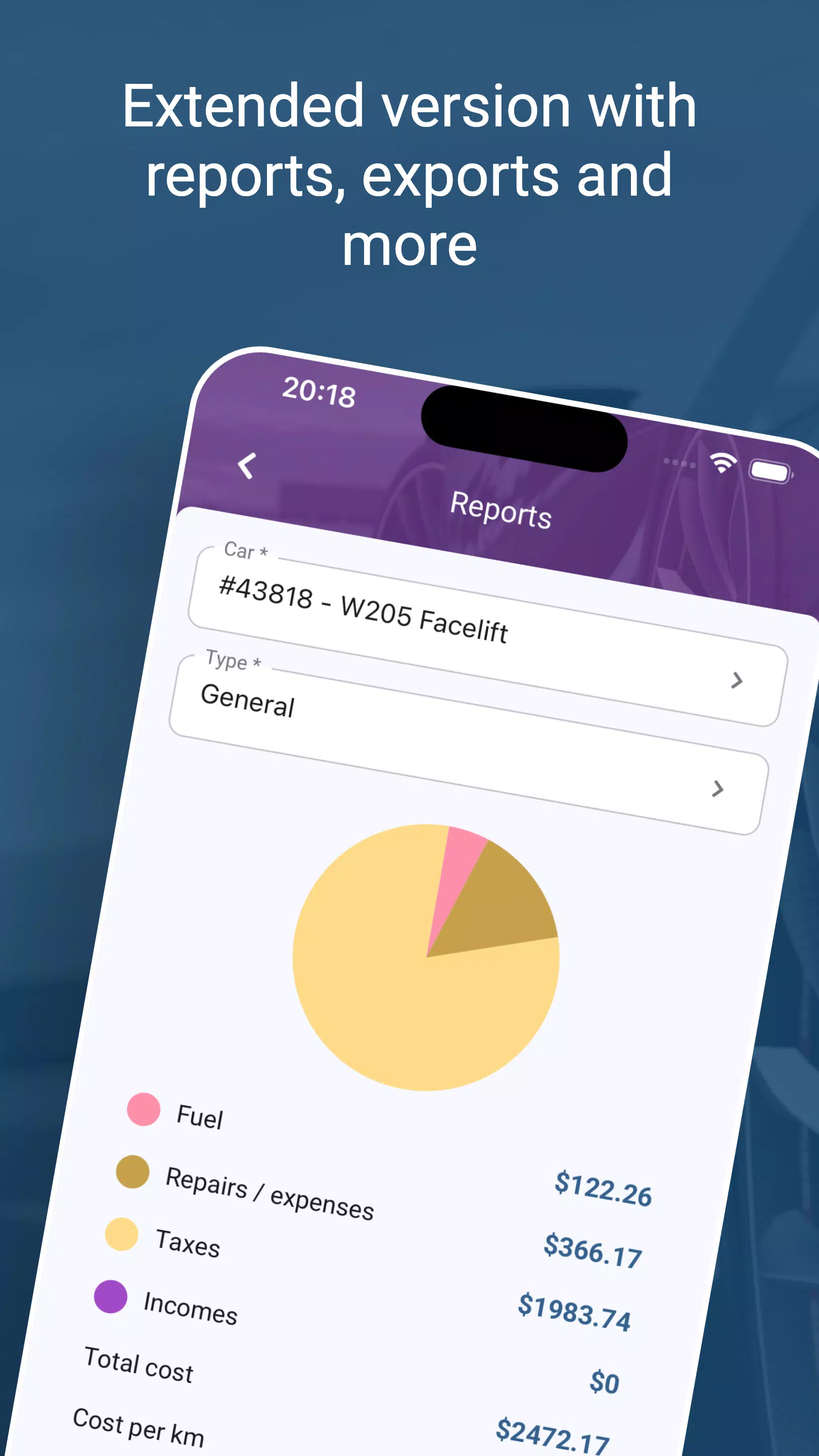 The app provides full control over fees, charges, repairs, and other expenses, allowing users to generate detailed reports on the cost of maintaining their vehicles.