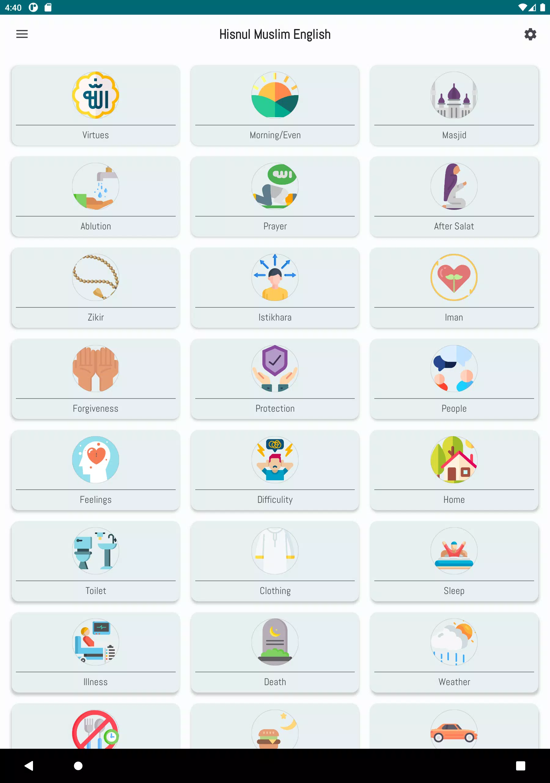 Introducing Hisnul Muslim English (حصن المسلم), an app that contains Islamic supplications Duas and Zikr. Derived from the Hisnul Muslim book by Sheik Saeed bin Ali bin Wahf al-Qahtani, this app features 267 Duas and Azkar from the Quran and Hadith. With a user-friendly interface, categorized Duas, bookmarking options, and daily reminders, this app is perfect for Muslims looking to strengthen their connection with Allah. Enjoy the convenience of English translations, customizable font sizes, offline use, and more, all for free and without any ads. Don't forget to share and recommend this app to your loved ones! Jazakum Allahu Kheiren!