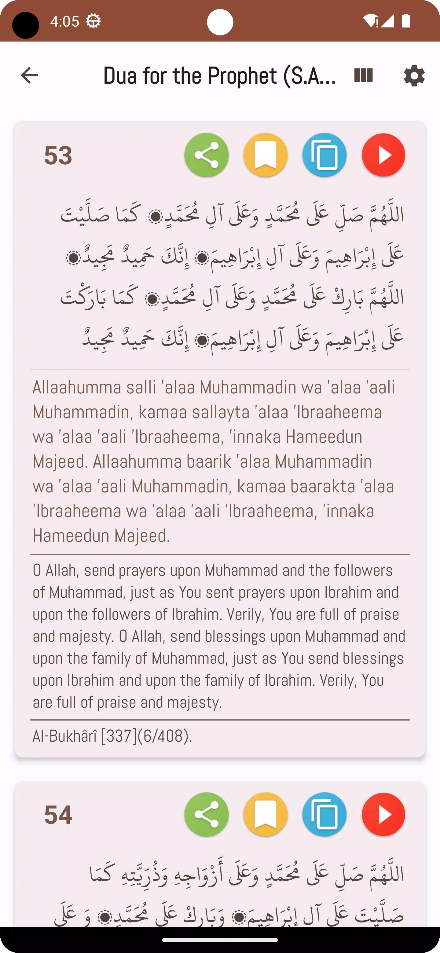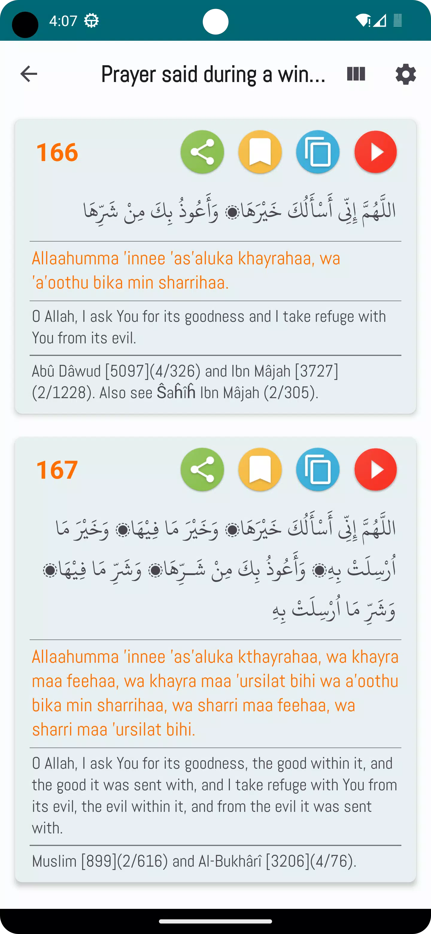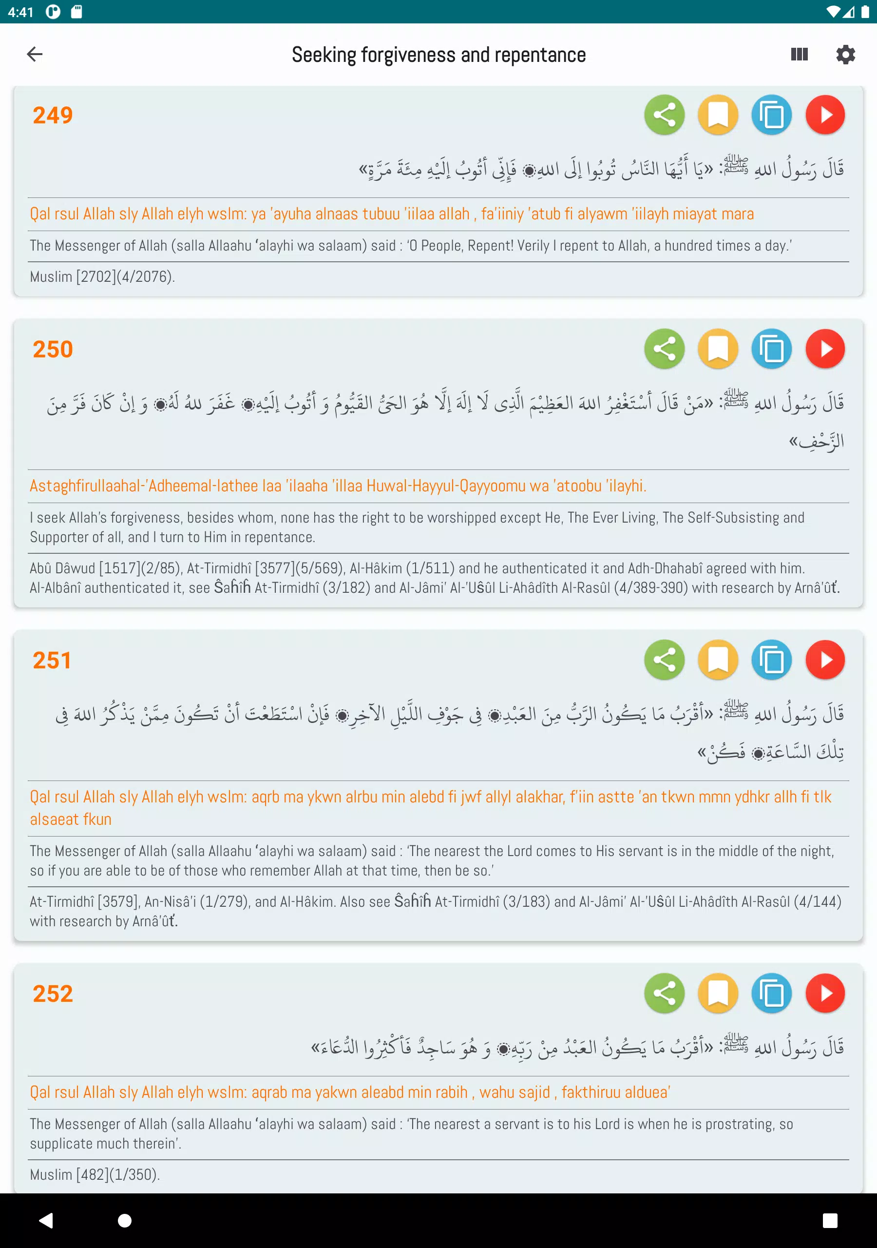 ⭐ Listen to Audio: Take advantage of the audio feature to listen to the pronunciation of Duas and Zikr, aiding in learning and memorization of these supplications.