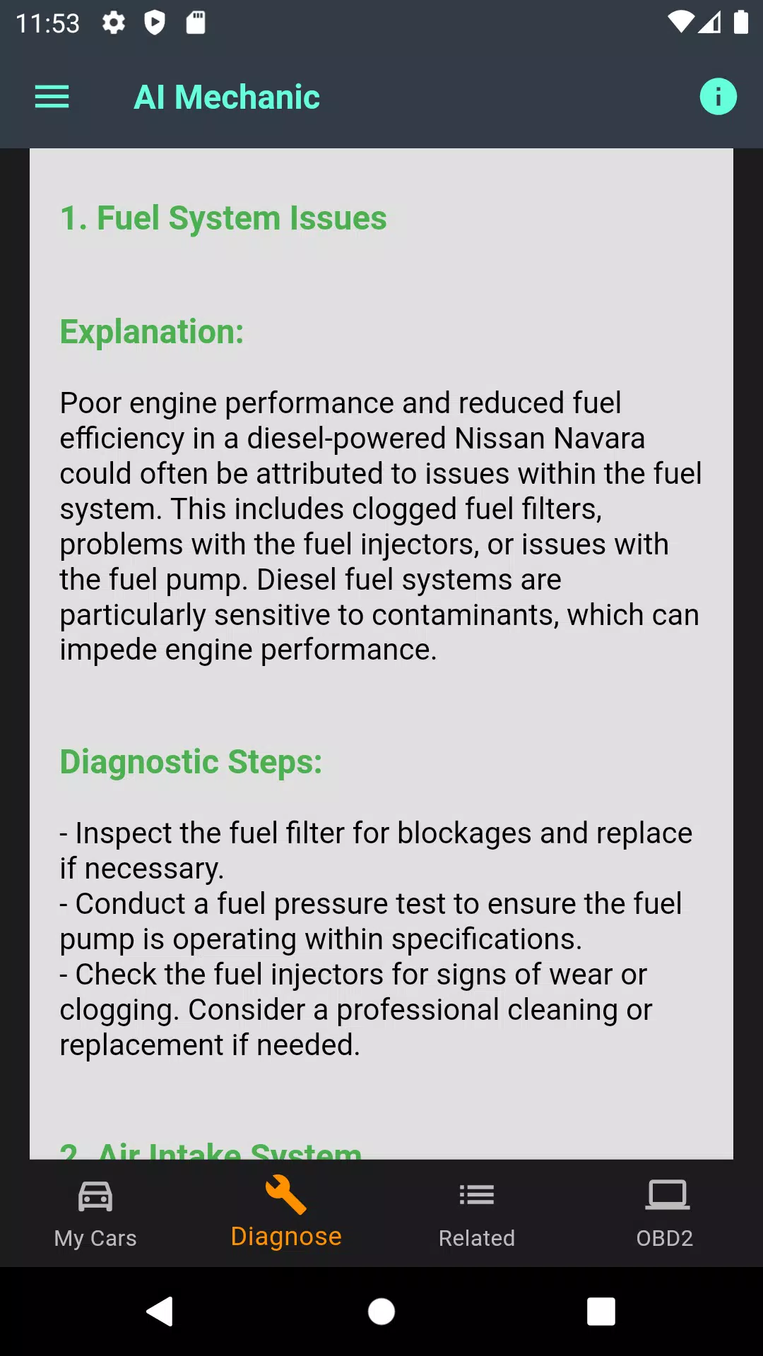 With AI Mechanic, you can harness the power of advanced AI technology to manage your car's health more effectively. From instant OBD2 decoding to tailored repair strategies and comprehensive car reports, this app offers a holistic approach to car maintenance and repair, making it the perfect companion for all your vehicle troubleshooting needs. Download AI Mechanic today and experience the new era of digital car maintenance.