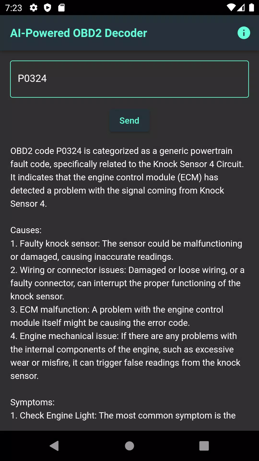Instant OBD2 Decoding: Input any OBD2 code and receive an immediate, comprehensive breakdown, including classifications for different types of vehicle issues, simplifying the troubleshooting process.