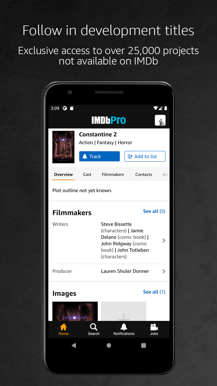 IMDbPro Track: Stay up-to-date with tailored notifications about the people and titles you are interested in, as well as access to over 000 projects in development.
