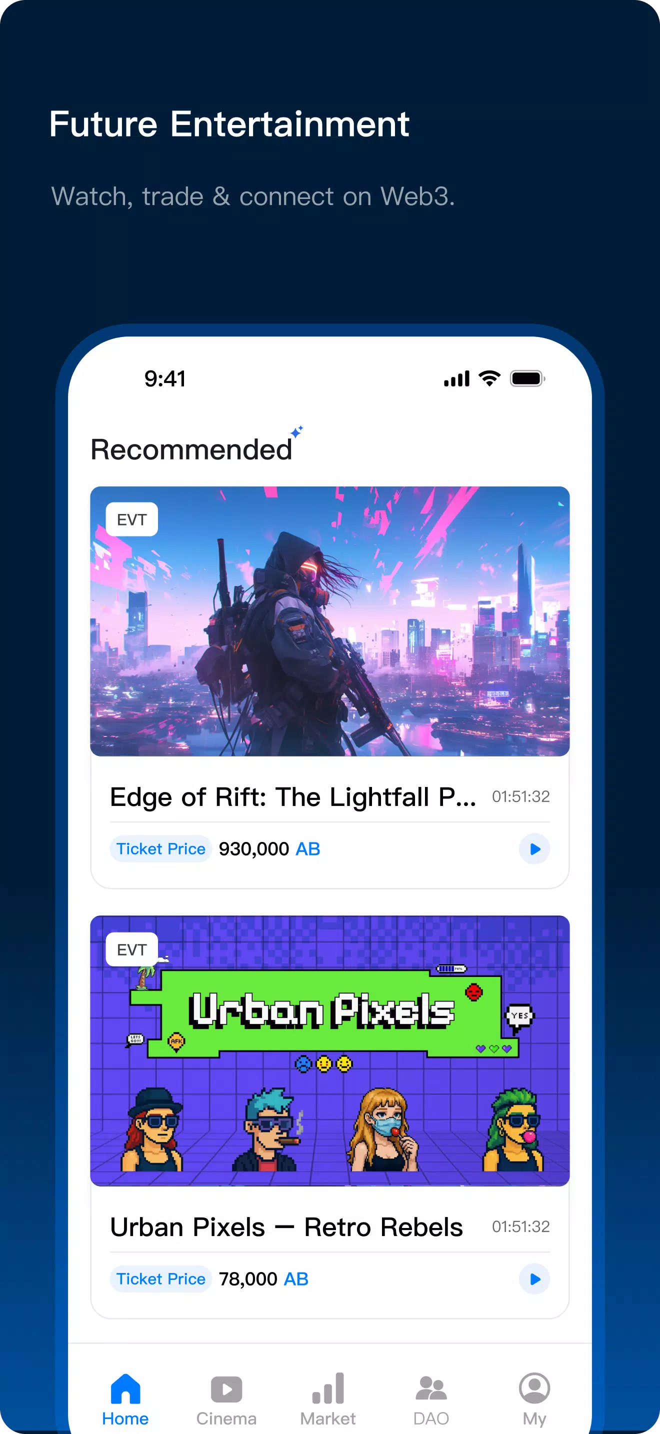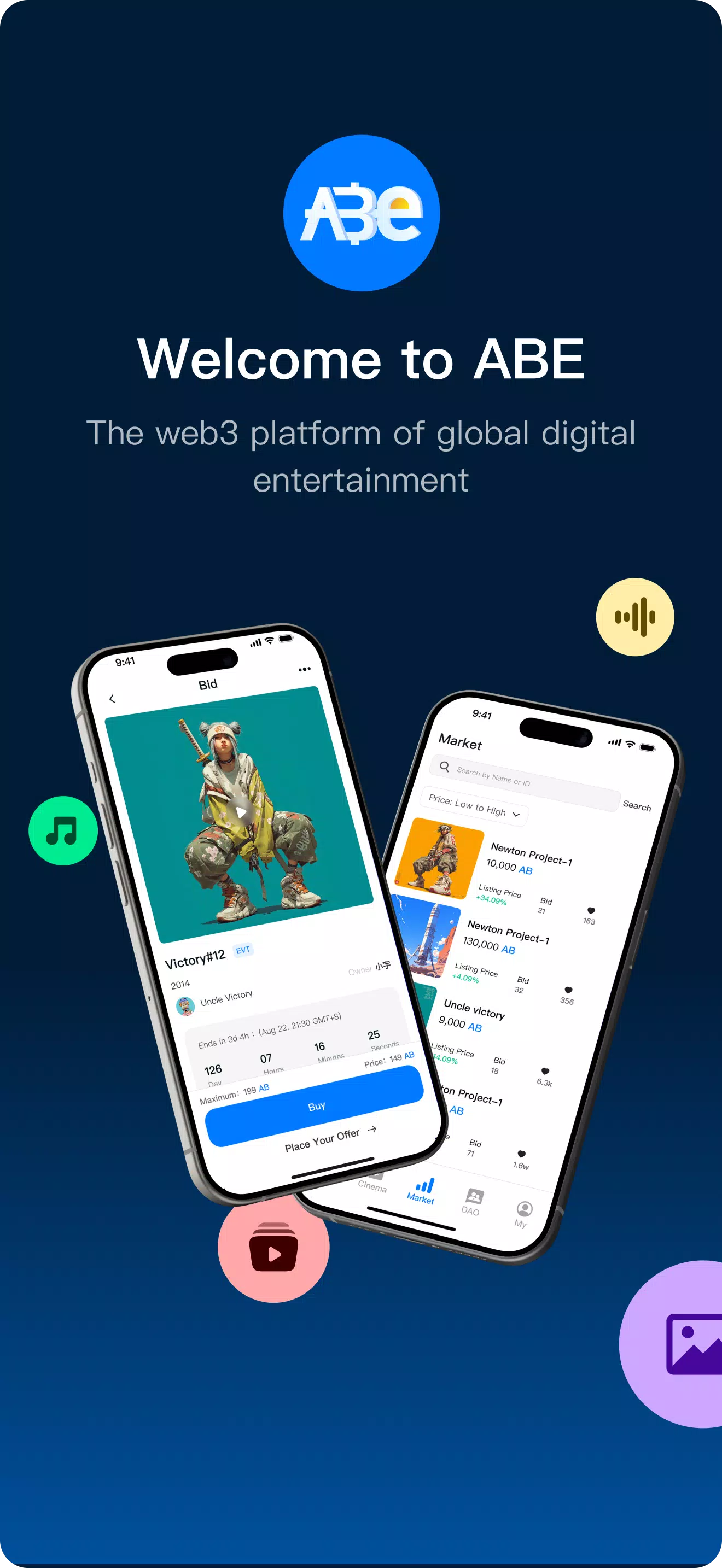 Introducing ABE, the ultimate Web3 platform for global digital entertainment. With cutting-edge blockchain technology, ABE seamlessly integrates digital assets like movies, TV series, and collectibles for a comprehensive experience in trading, distribution, and entertainment. Featuring multi-asset trading through EVT and NFT technology, users can browse, view, bid, and sell with ease. ABE fosters a community-first approach, embracing diverse digital cultures from around the world. And with innovative Ticketing-To-Earn feature, users can distribute tickets to earn rewards. Join ABE today and immerse yourself in the future of digital entertainment!