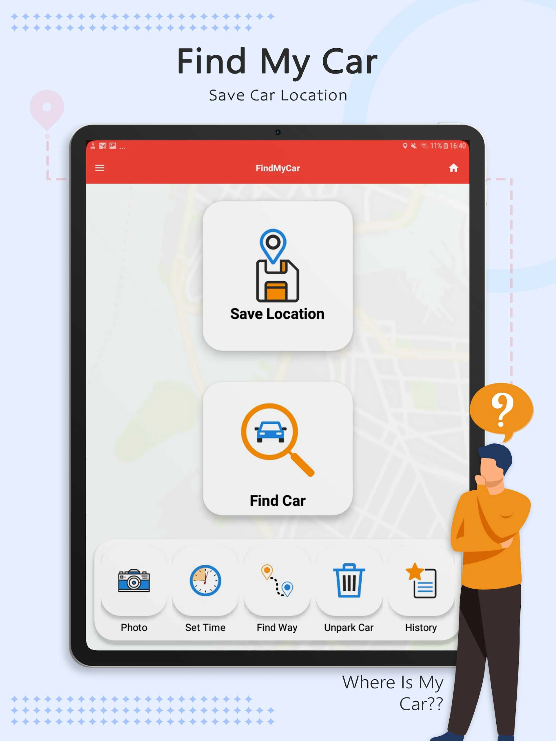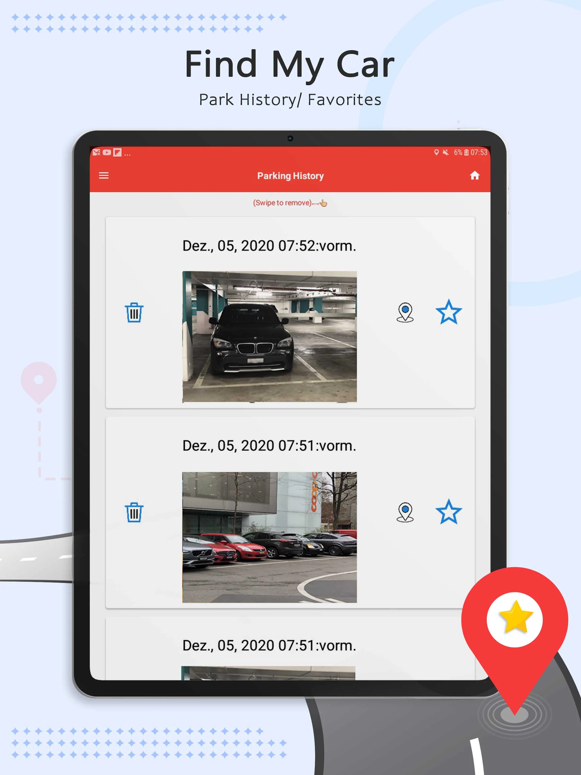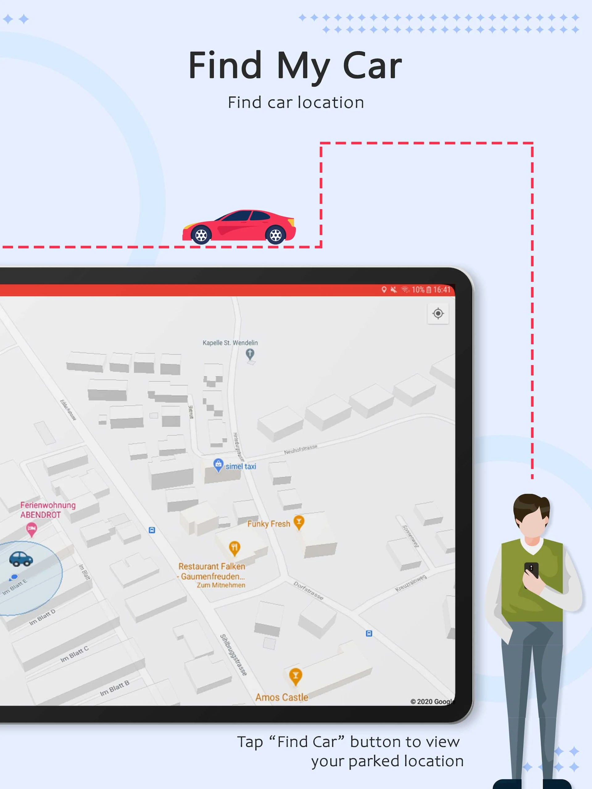 Tired of wandering around the parking lot searching for your car? With this intuitive and user-friendly car locator app, you can easily mark your parking spot with a simple tap and later find your way back with just one click. No more forgetting where you parked or feeling frustrated after a day out! Additionally, Find my Car - Car Locator offers features like a parking meter alarm, photo reminders, navigation assistance, and the ability to save favorite locations. Say goodbye to the stress of losing your car and hello to a convenient solution for remembering where you parked. Download now and make parking hassle-free!