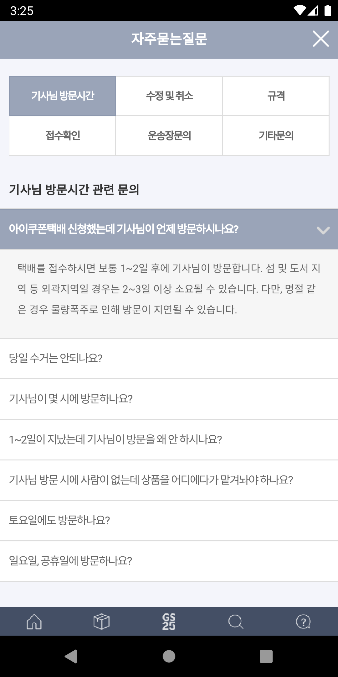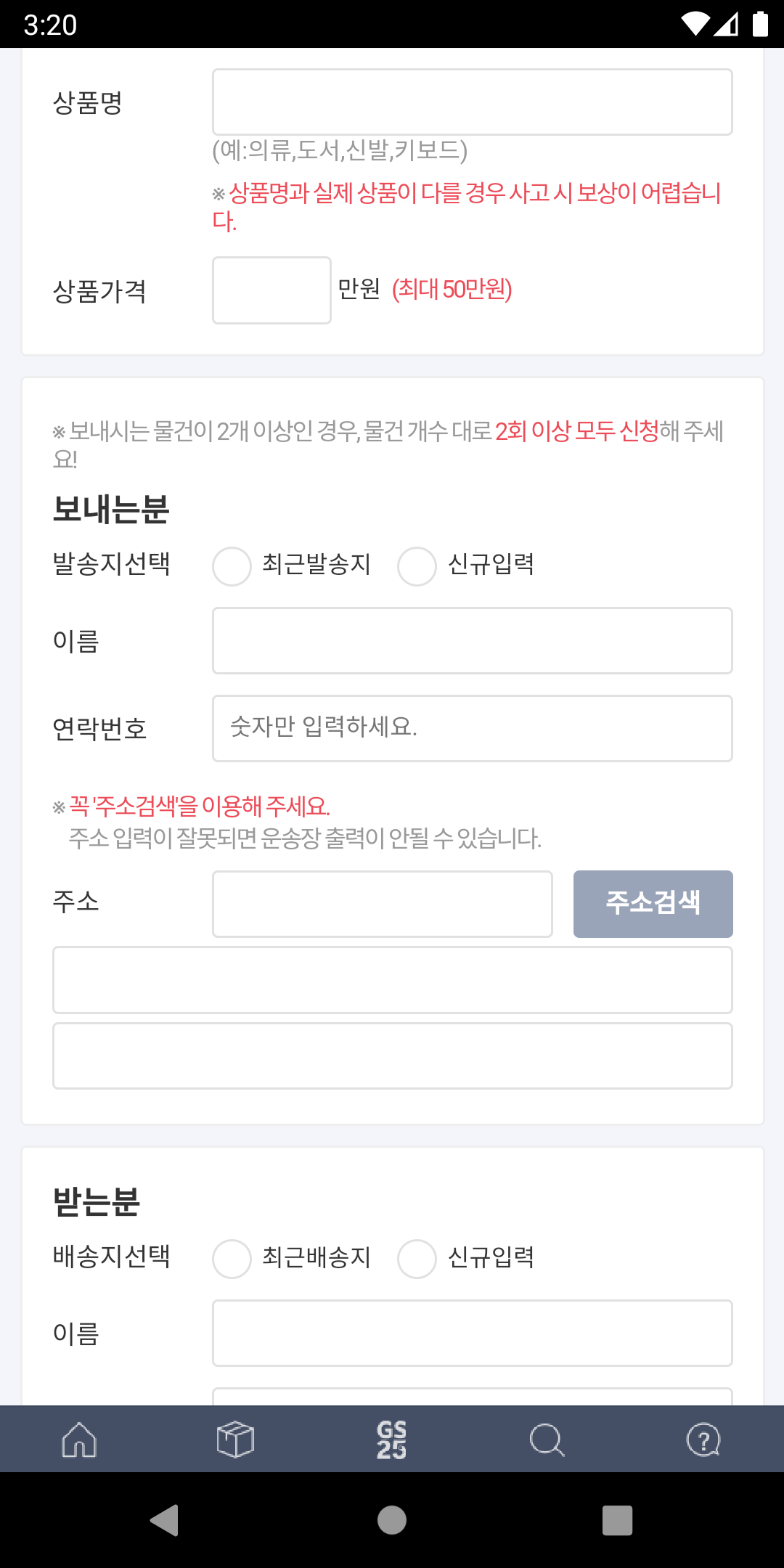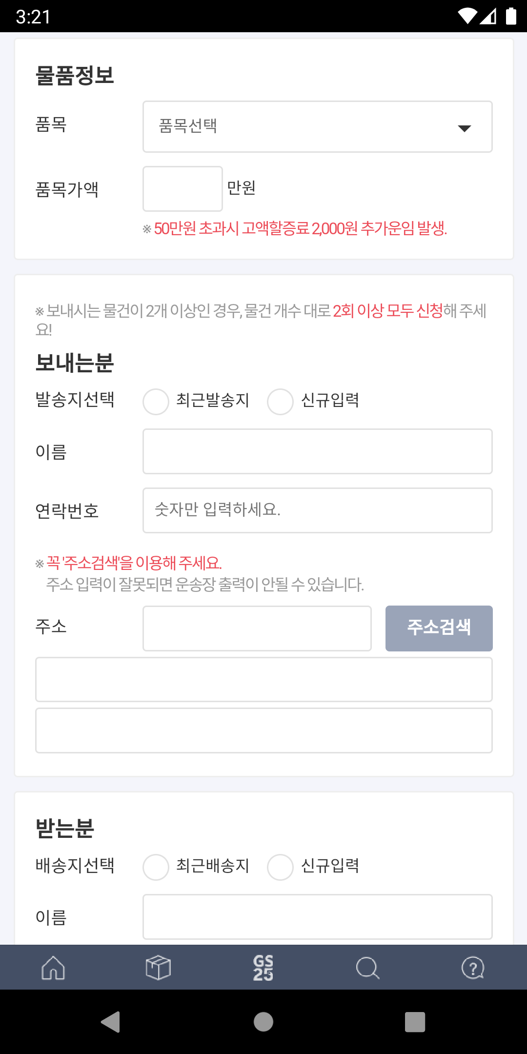 If you encounter any issues, feel free to reach out to customer service for assistance.Introducing "아이쿠폰 택배," the ultimate parcel booking solution in Korea. With a seamless interface, users can easily schedule home pickups with top courier services or opt for the convenience of dropping off parcels at nearby GS25 stores. Say goodbye to heavy lifting and endless price comparisons - this app streamlines the entire process. Backed by industry leaders like Hanjin and CJ Logistics, "아이쿠폰 택배" focuses on simplicity and efficiency. Whether you're sending a package or booking a convenience store courier, this app has you covered. Download 아이쿠폰 택배 now for hassle-free parcel delivery!