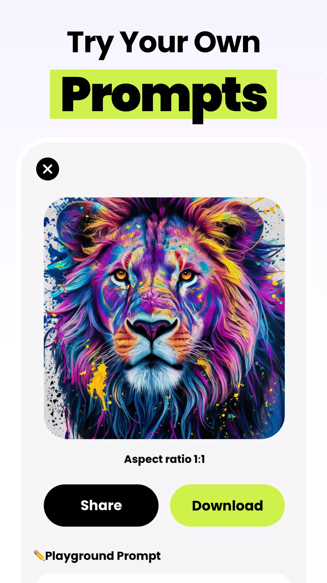 Download the AI Image Generator today and unleash your creativity with the power of advanced AI technology. Transform your words into stunning artwork and explore a world of endless possibilities. Don't miss out on the opportunity to enhance your artistic skills and discover new inspiration. Download now and start creating with Playground: Image Generator AI.