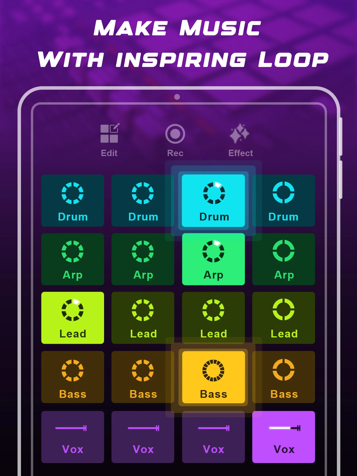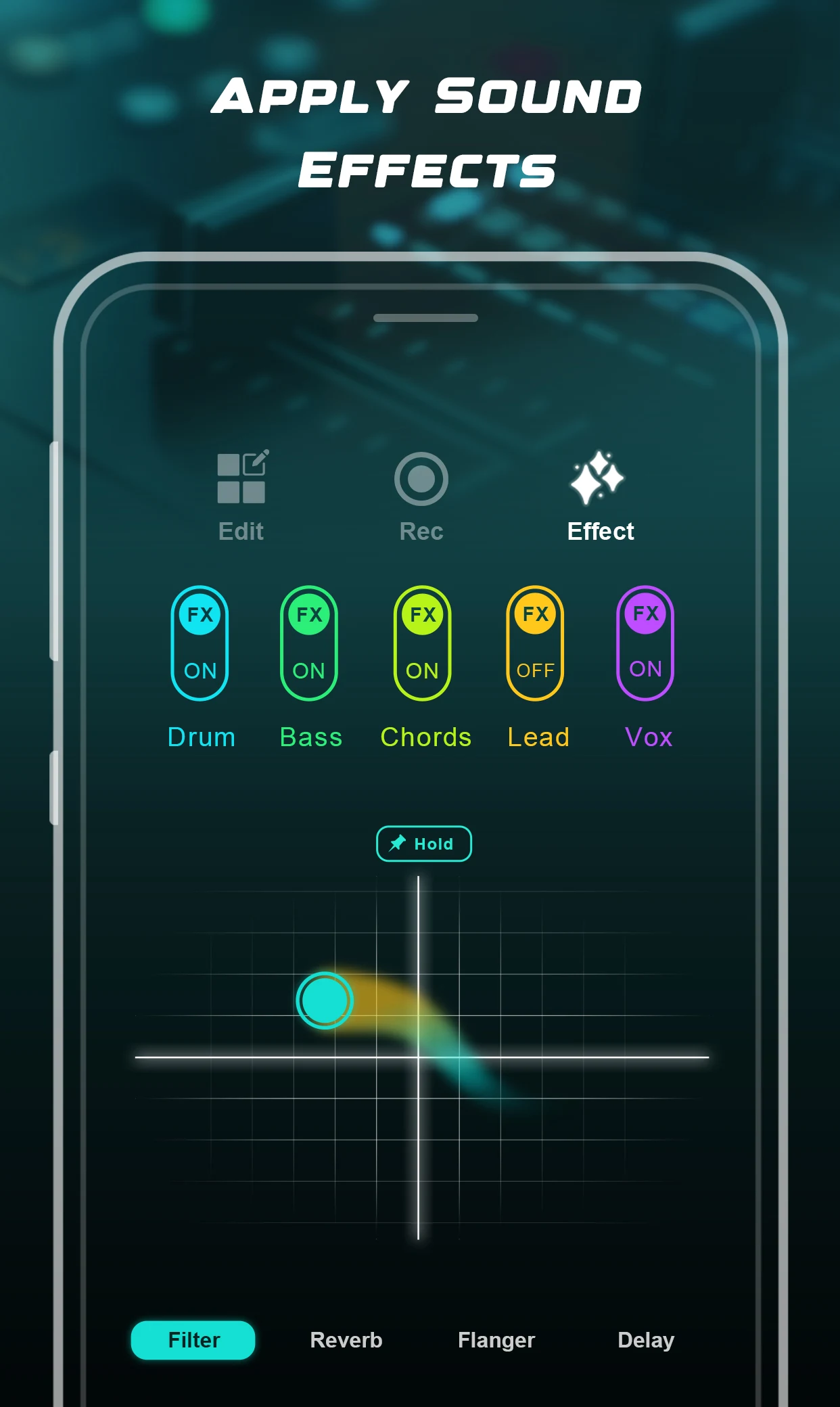 Professional effects like filter, flanger, reverb, and delay to enhance your loops.
