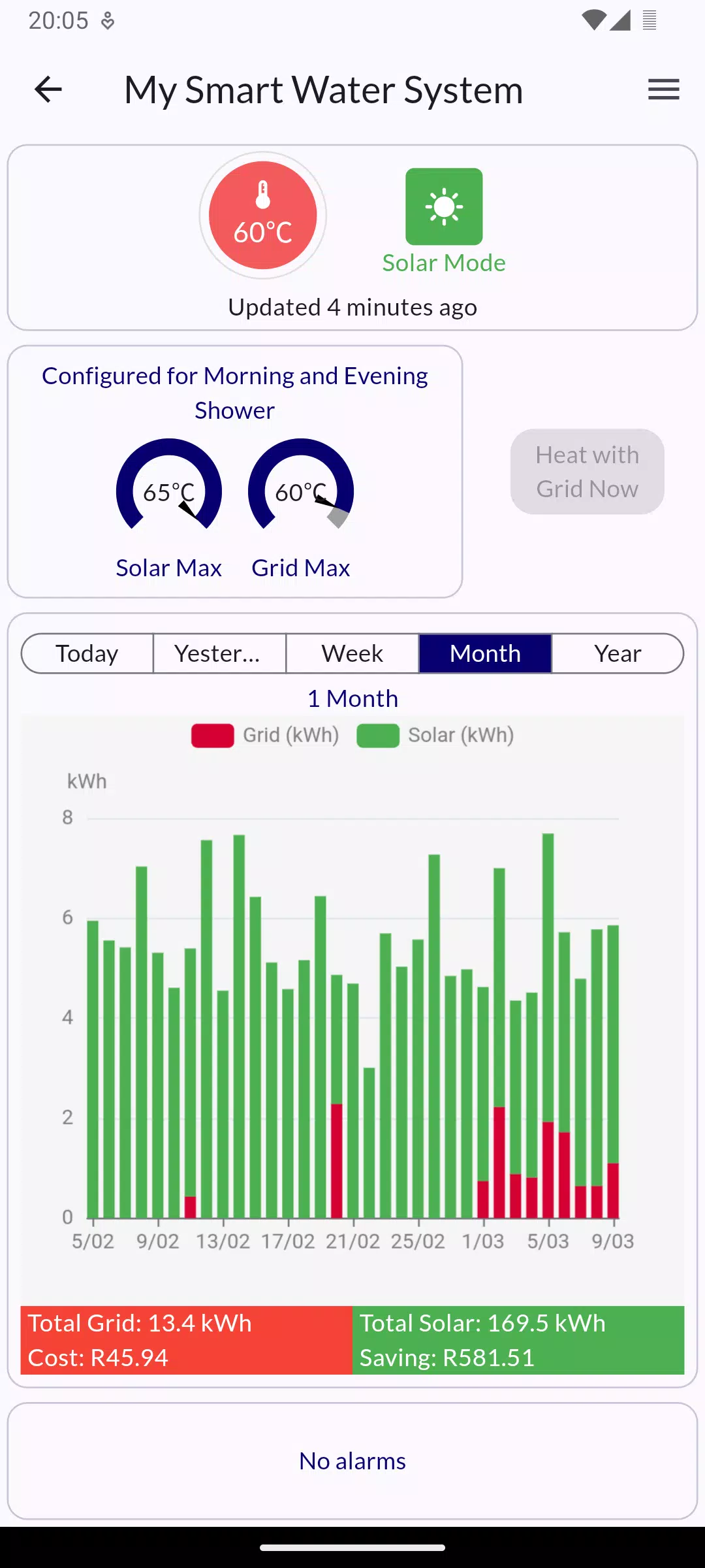 - Grid Heating Boost: Request a quick grid heating boost on overcast days to ensure you always have a supply of hot water.