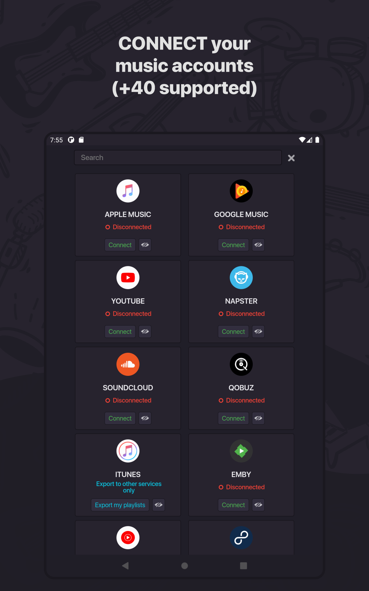 Enjoy a clean and user-friendly interface to manage all your music accounts seamlessly.