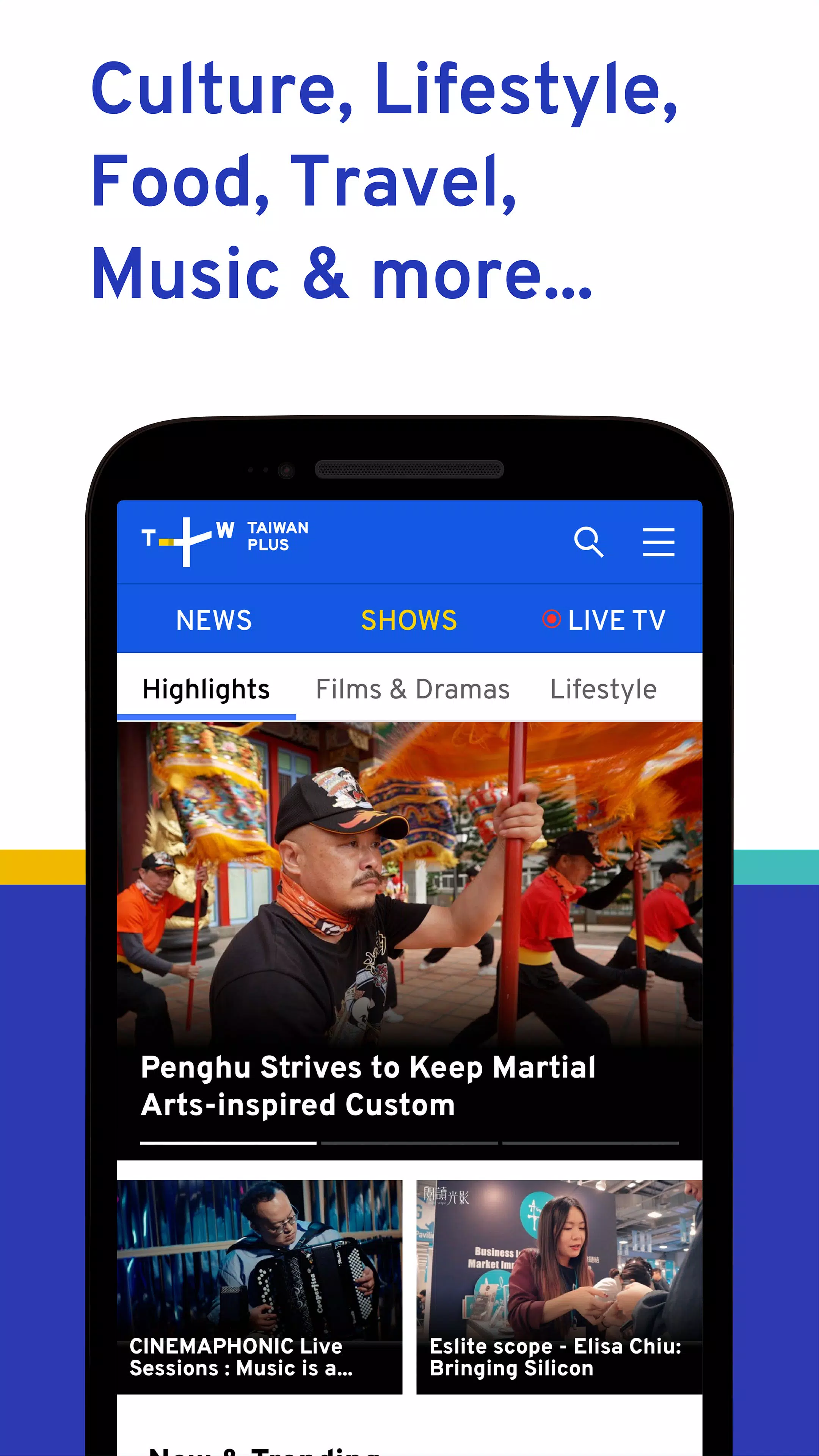 Cultural Insights: Explore Taiwan's rich culture and heritage through award-winning documentaries, original TV programs, and cultural stories. Learn about Taiwanese traditions, history, art, and more from the comfort of your own home.