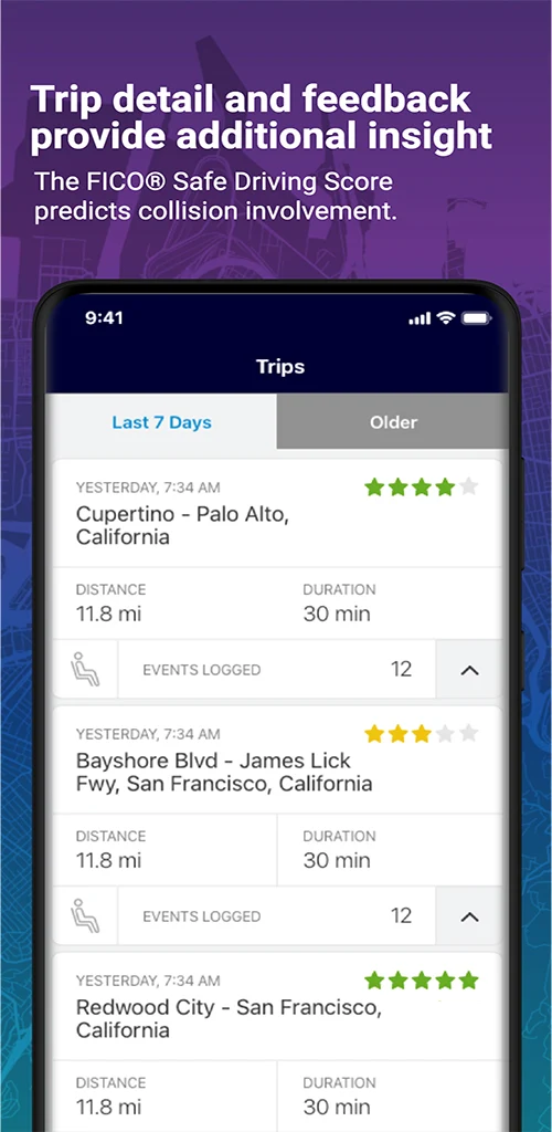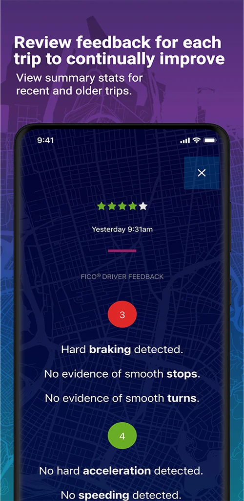 FICO® Safe Driving Score: Monitor your overall driving performance with a personalized score.