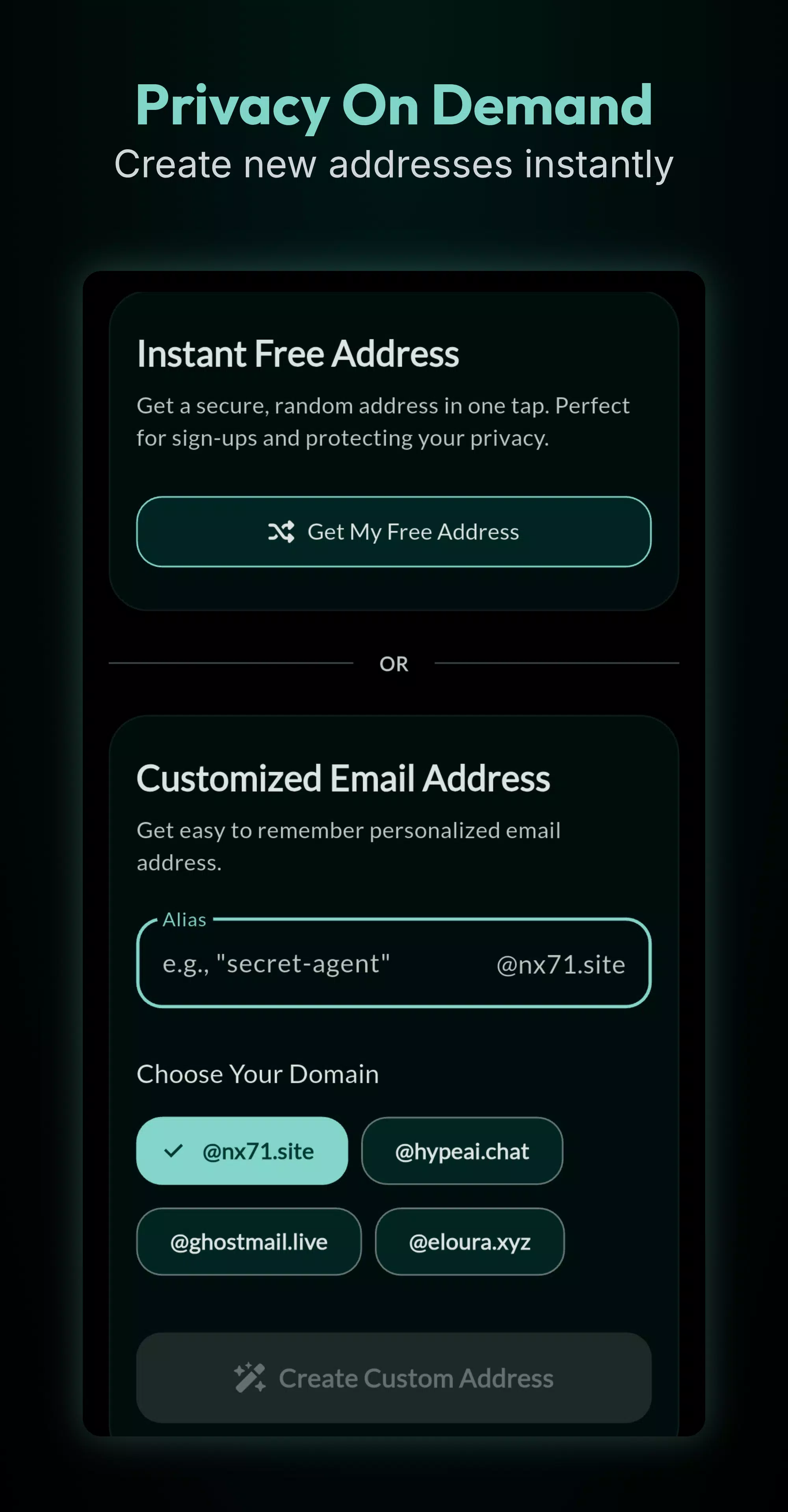 Introducing Ghostmail—Persistent Temp Mail, the ultimate solution for controlling your privacy and keeping your inboxes clean. With GhostMail, say goodbye to temporary email addresses that disappear just when you need them most. Unlike other temporary email apps, GhostMail lets you keep your disposable addresses for as long as you need, ensuring you never lose access to critical messages. Protect your privacy, block spam, and enjoy flexible inboxes with maximum control. With features like instant temp mail generation, powerful spam protection, and a simple interface, GhostMail is perfect for website sign-ups, forums, business registrations, and more. Download GhostMail today and reclaim your inbox from the clutter of spam emails.