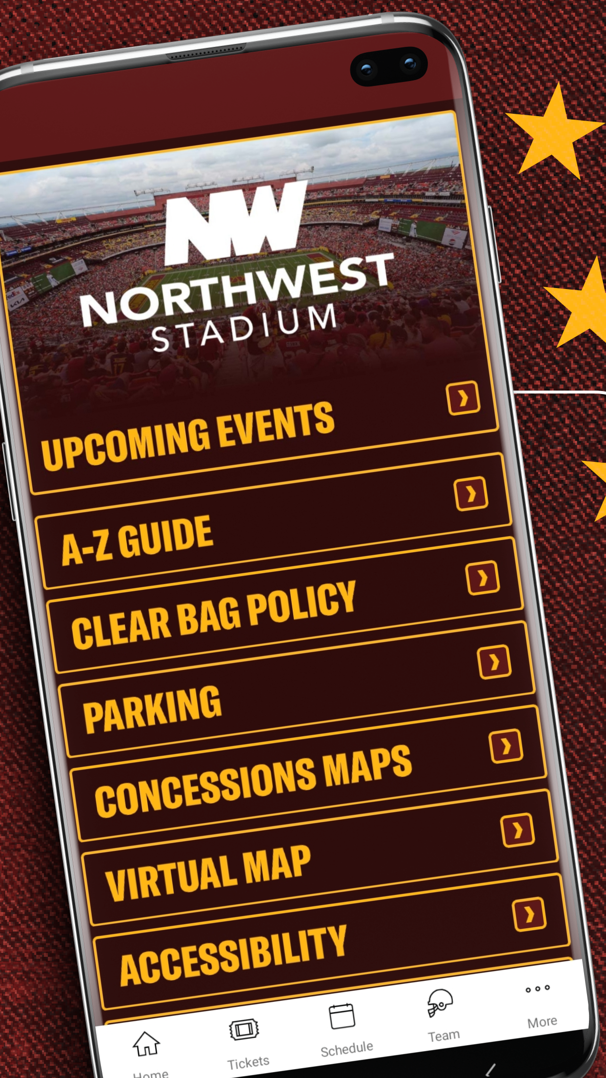 - Gameday Companion: Seamlessly transition from digital tickets to real-time stats and player information during games.