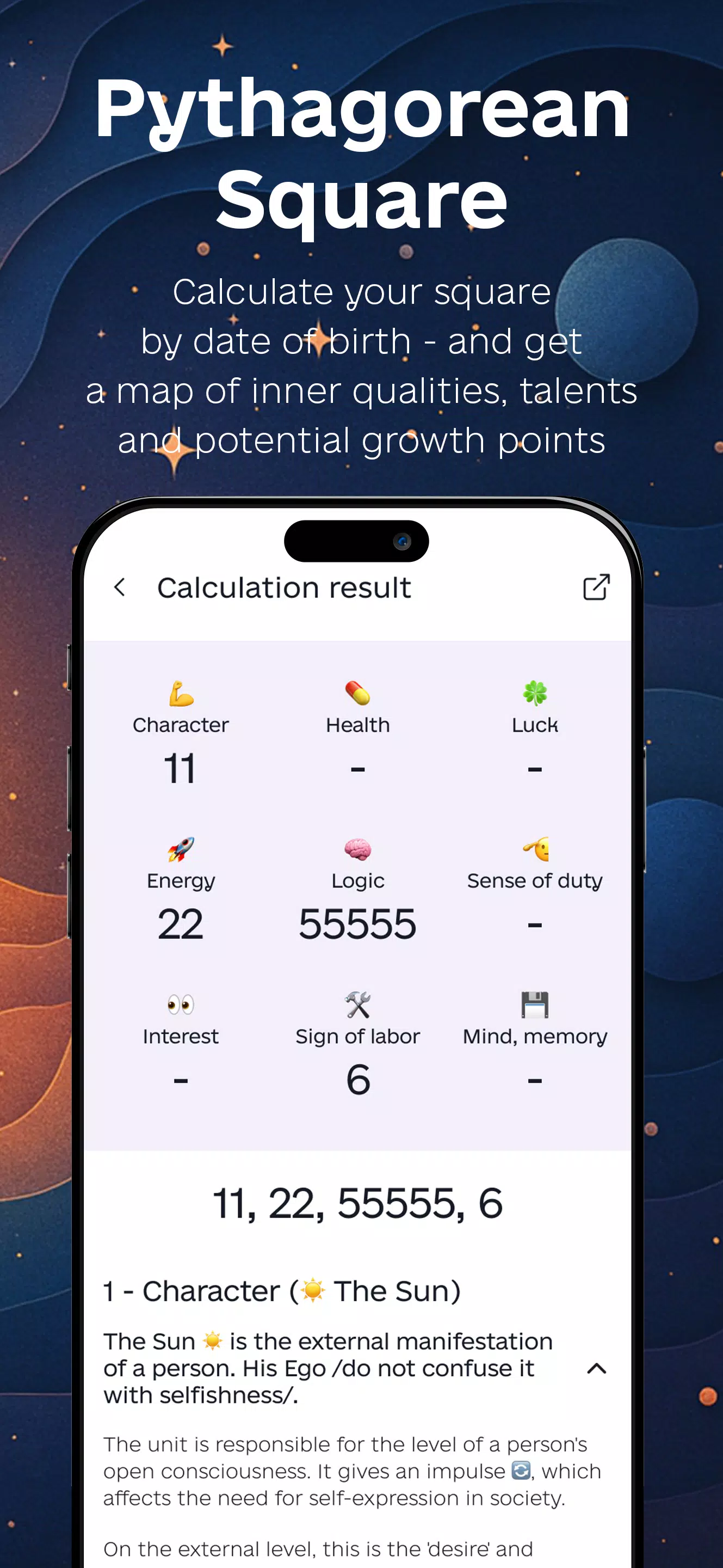 * Number Selection for discovering the unique vibration each number carries.