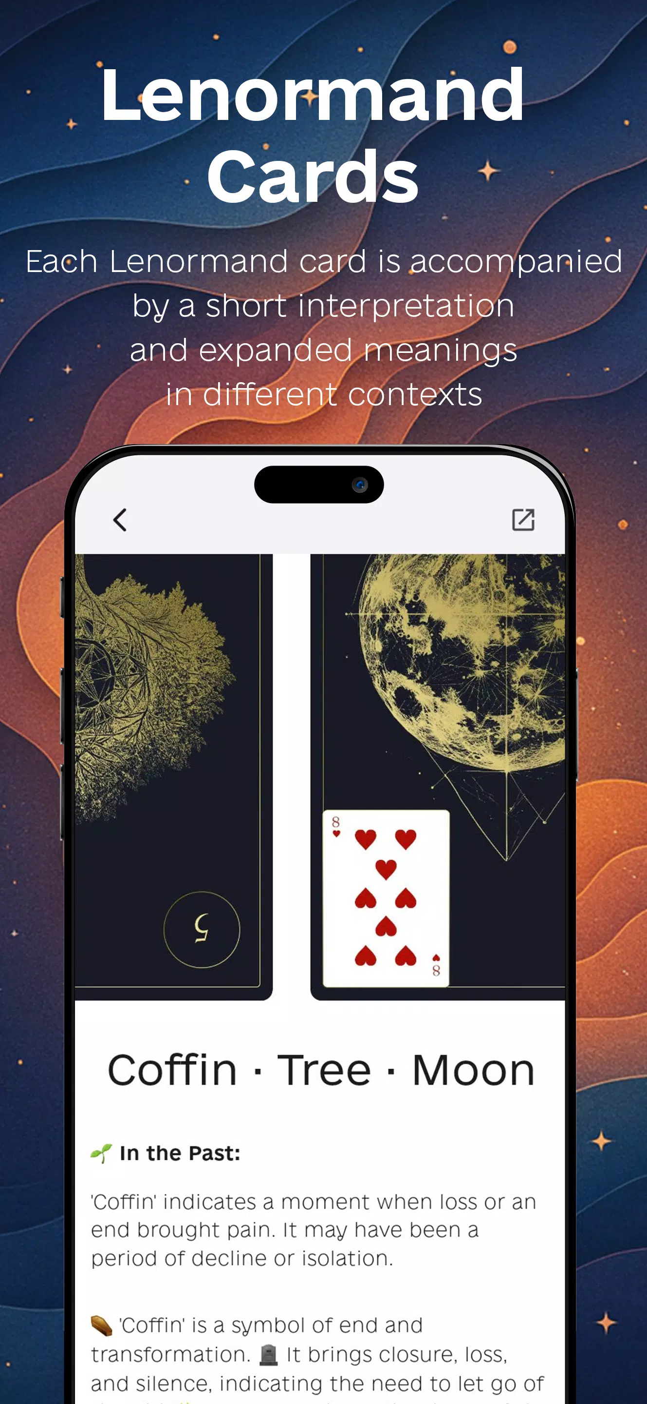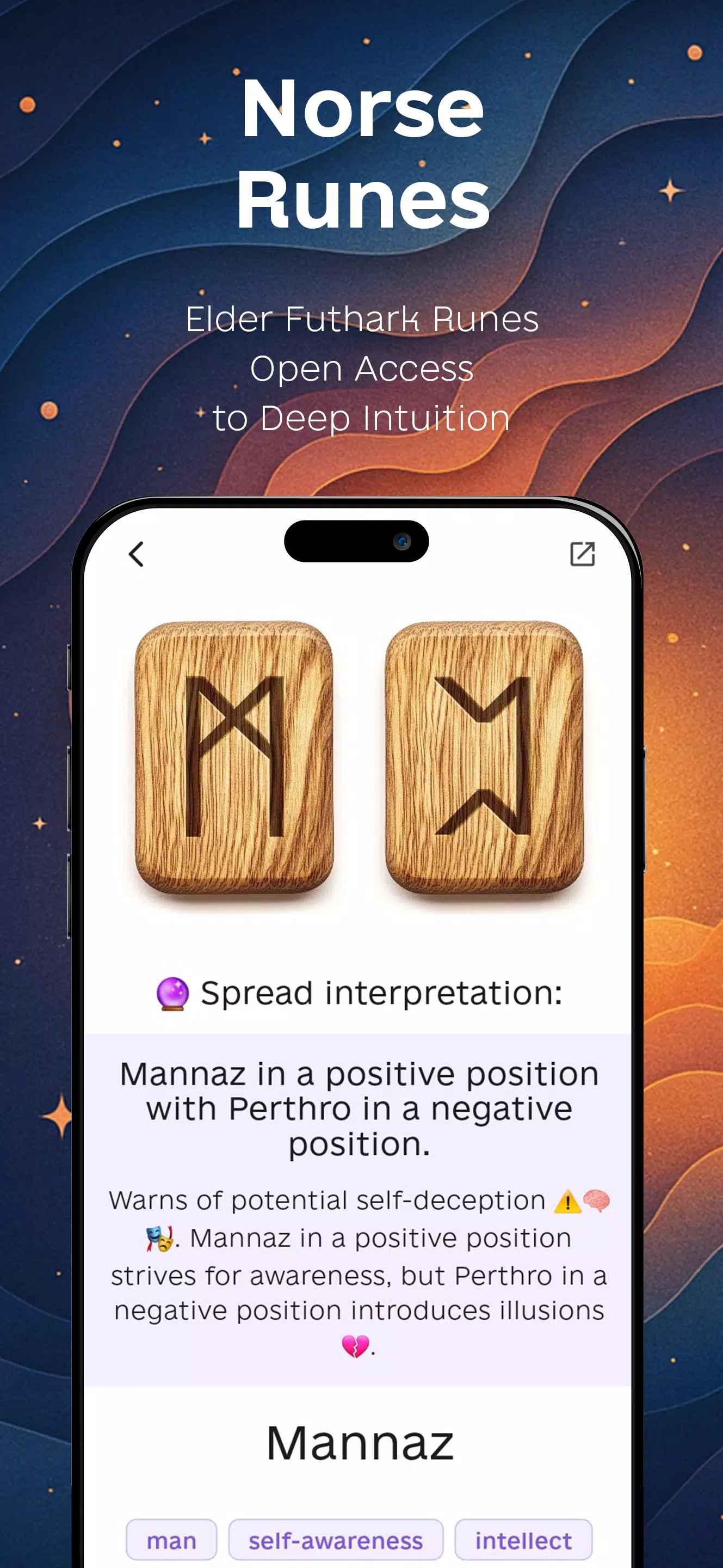 * Explore different features like Norse Runes and Lenormand Cards for self-discovery.