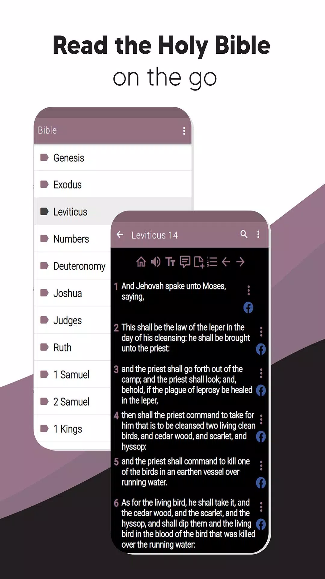 - Offline Bible: Access the Bible anytime, anywhere without needing an internet connection. Perfect for reading on the go, in line at the supermarket, or before bed.