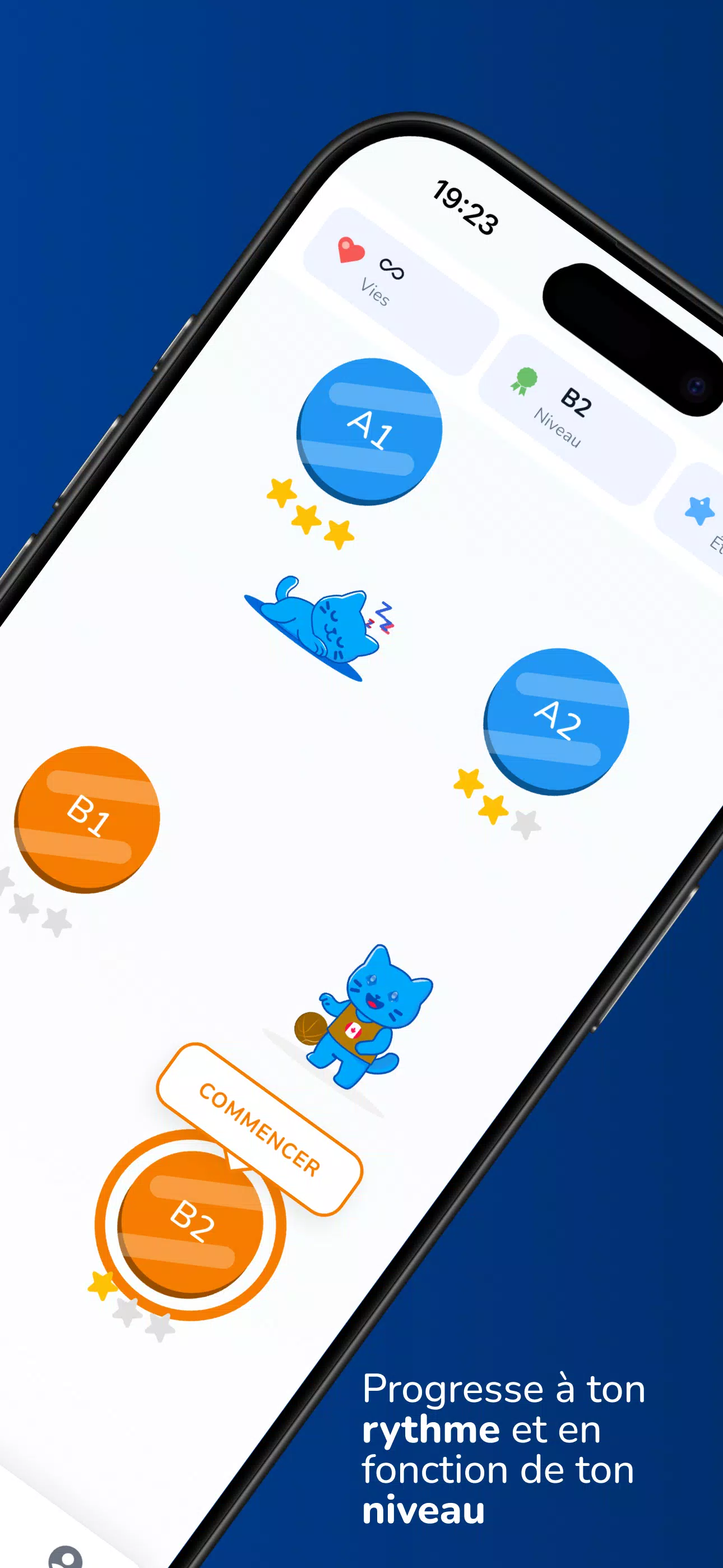 Placement test: Take a placement test to determine your CEFR level, ranging from A1 to C