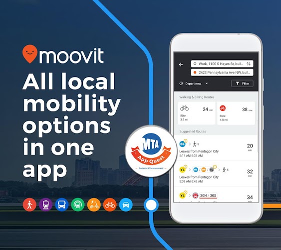 5. Multi-Mode Transport Options: Moovit covers more than just traditional buses and trains—it includes ride-sharing services, ferries, and bike-sharing stations, offering a variety of travel options depending on your city and preferences.