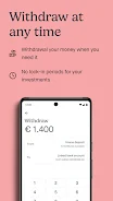 Peaks keeps the fee structure straightforward: the app offers a free first month, no charges for deposits, withdrawals or portfolio changes, and subscription tiers that start with an entry package for modest monthly fees. There is an annual variable service fee ranging roughly from 0.25% to 0.50% of invested assets, plus underlying fund costs (around 0.15%–0.23% per year) and a small market spread on trades (about 0.03%–0.05%). The platform also emphasizes thematic choices such as sustainable energy, automation & robotics, or country-specific exposure for tailored portfolio building.