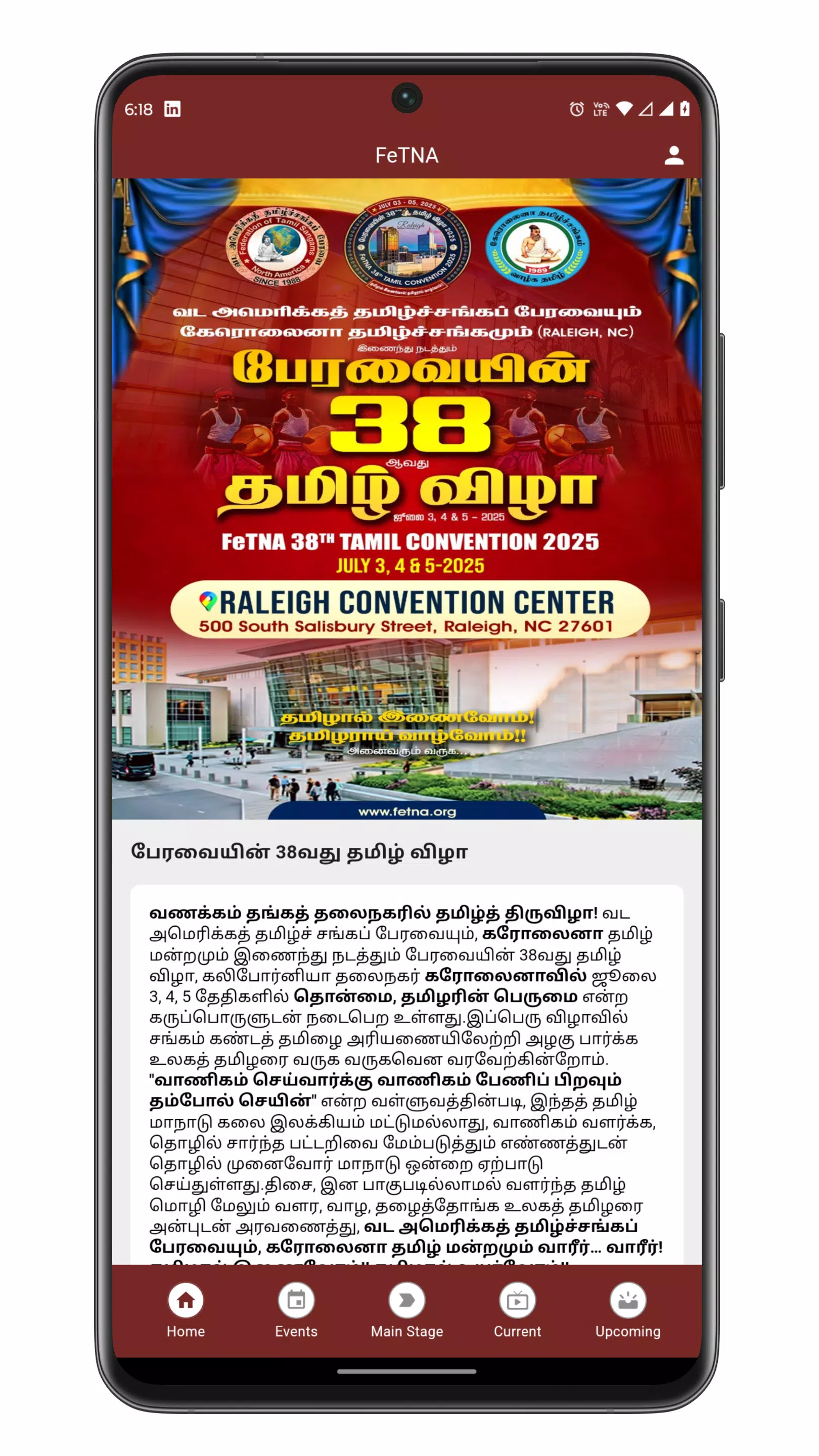 FeTNA Convention is the official mobile app from the Federation of Tamil Sangams of North America that helps users discover, track, and participate in Tamil cultural and community events across North America. The app consolidates event calendars, agendas, venue details, guest and artist line-ups, and live alerts into a single interface so attendees and remote followers can plan schedules, find locations, and receive timely updates. Whether you want to follow a live program, browse photo galleries, or contact organizers, FeTNA Convention provides practical tools to stay connected with Tamil cultural life.