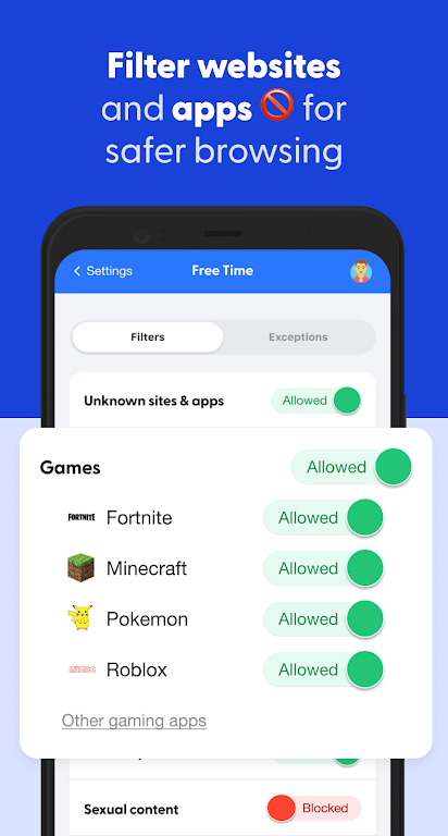Bark monitors texts, email, video platforms and 30+ apps and social networks for signs of cyberbullying, sexual content, threats, self-harm signals and other concerns. The app sends targeted alerts to parents when potential issues are detected rather than giving full access to every message or post. Screen time management lets you set daily limits and create schedules for internet access over both cellular service and Wi-Fi. Web filtering allows blocking or allowing specific sites or entire categories such as streaming, gaming and adult content. Bark Home support provides a separate hub device option to manage filtering and screen time across all Wi-Fi-connected devices in the house, and requires an active subscription.