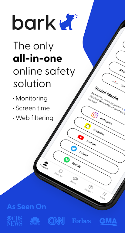 Bark helps parents protect children online by monitoring texts, email and more to detect cyberbullying, sexting, depression, suicidal ideation and other risks. Bark scans activity across social media, messaging and video platforms and alerts caregivers only when it flags potentially problematic content, so you receive relevant warnings without having to review every message. Families use Bark to set screen time schedules, filter websites and apply device-level rules to establish healthy boundaries while preserving privacy and independence for children.