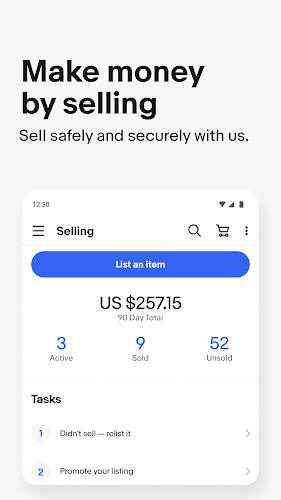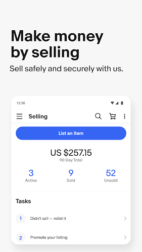 Use eBay: Shop & sell in the app to list items with photos and descriptions, respond to buyers, and monitor sales performance and payouts.