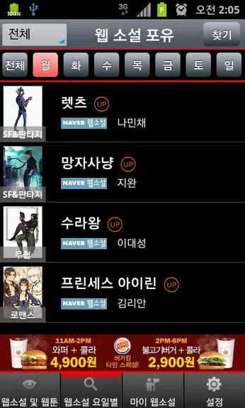 웹소설 포유(네이버 웹소설 요일별 모음) is a simple reader that organizes Naver web novels by publication day of the week. 웹소설 포유(네이버 웹소설 요일별 모음) makes it easy to find ongoing series, track update days, and open each title's source on Naver. 웹소설 포유(네이버 웹소설 요일별 모음) focuses on clear browsing and quick access to weekday listings.
