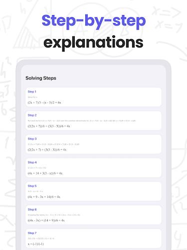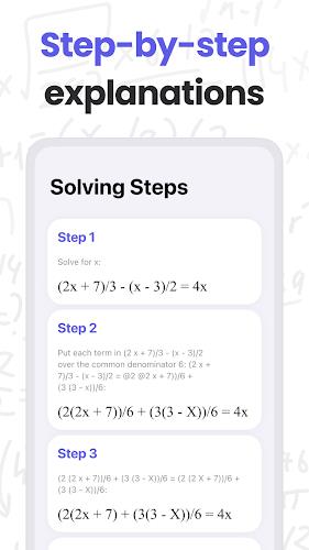 Quick, accurate results reduce time spent on routine calculations and equation solving, making study sessions more efficient. MathMaster offers clear step-by-step explanations to help users understand the reasoning behind each solution. Recognition of both handwritten and printed problems makes the app flexible for classroom notes, homework, or textbook pages. Wide subject coverage makes MathMaster useful for exam preparation, homework help, and targeted practice across multiple math levels.