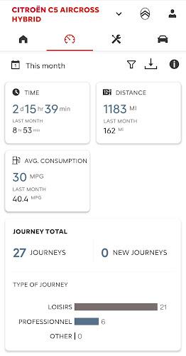 MyCitroën lets you connect your smartphone to your Citroën vehicle and brings vehicle information and journey tools into a single app. The MyCitroën app is designed to make tasks before, during and after every drive easier by showing where you parked and your position on a map, recording trip data such as distance, fuel consumption and driving efficiency, and offering on-foot guidance from the parked car to your final destination. It also displays vehicle-specific details like fuel level, mileage and service reminders, and provides dealer contacts, news and key phone numbers for assistance.