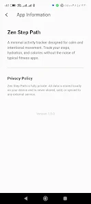 Because Zen Step Path operates offline and stores information locally, you maintain control of your data and avoid automatic sharing. Manual entry makes it easy to correct or adjust totals without relying on sensors, and the focused feature set keeps the app lightweight and simple to use. Visual feedback from the circular progress and hydration indicators clarifies progress toward daily targets, while contextual estimates add useful information without complicating the interface.