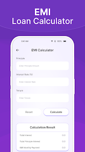 Instant EMI calculation for any loan type based on principal, interest rate and tenure; fixed deposit and PPF calculators to estimate investment returns and maturity values; simple input fields for loan amount, interest rate and repayment period that deliver quick results; clear monthly installment and total interest estimates to support everyday financial planning.