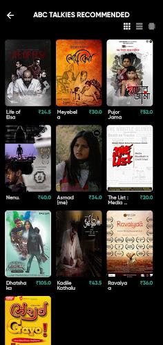 ABC Talkies is a cinema marketplace where viewers can discover and rent independent films, shorts, documentaries, cineplays and full-length features across multiple languages and formats. As a pay-per-view service, the app lets users pay only for the titles they watch — no subscription required — with ticket prices starting as low as Rs 4. The curated catalog focuses on independent cinema and provides a flexible interface to browse by genre, language or format and stream on demand when you choose to watch.
