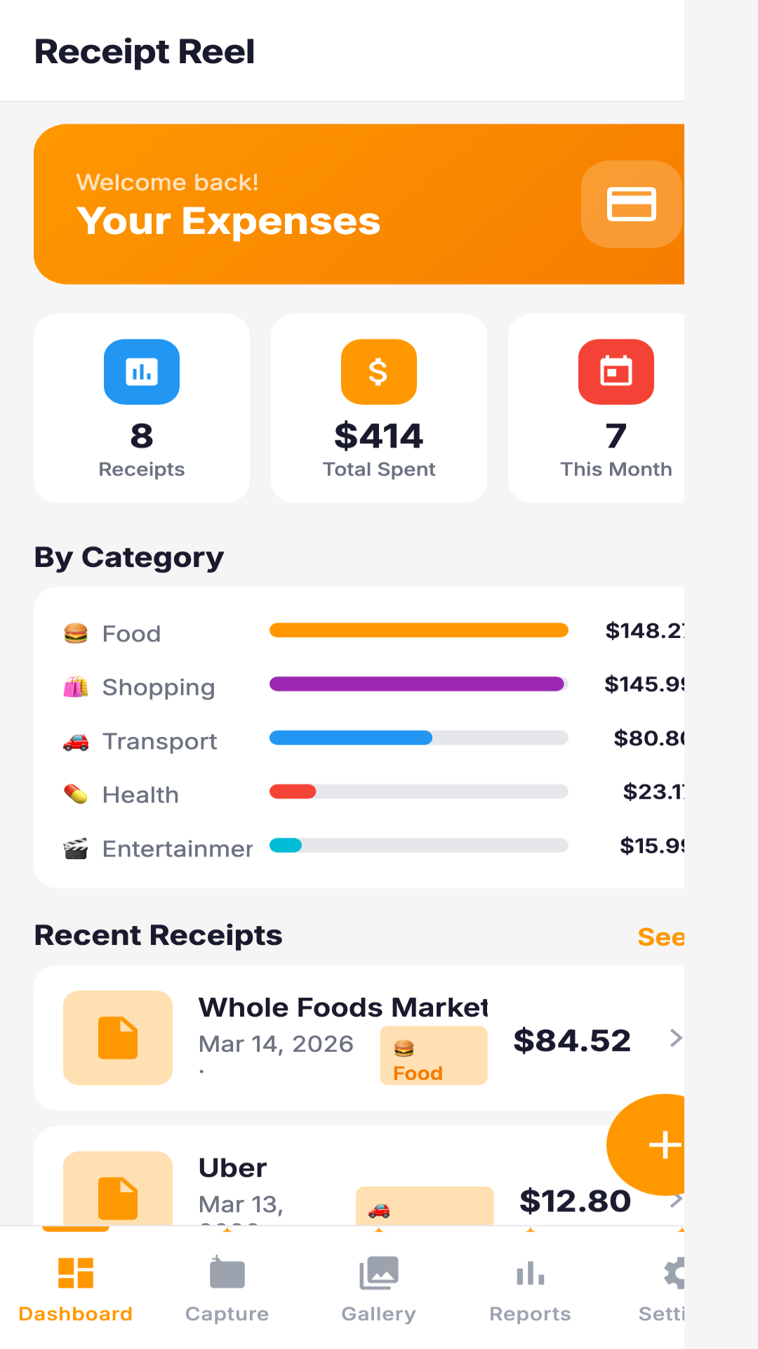 ✅ Quick scanning and a central gallery make it easier to find and manage receipts when preparing reports.