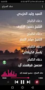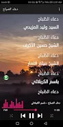 The app features voice recordings by known reciters, including Abazar Al-Halwaji, Mr. Walid Al Mazeedi, Sheikh Hussein Al Akraf, Sheikh Maytham Al-Tamar, Karbalai, and Mohsen Farahmand Azad, who contribute the different renditions presented in دعاء الصباح | بدون نت.