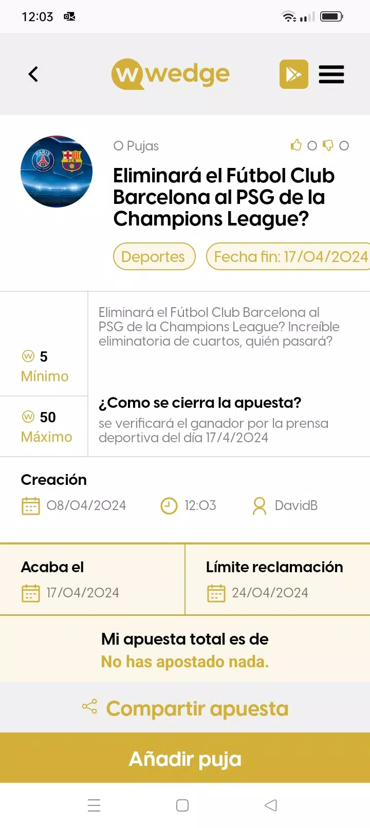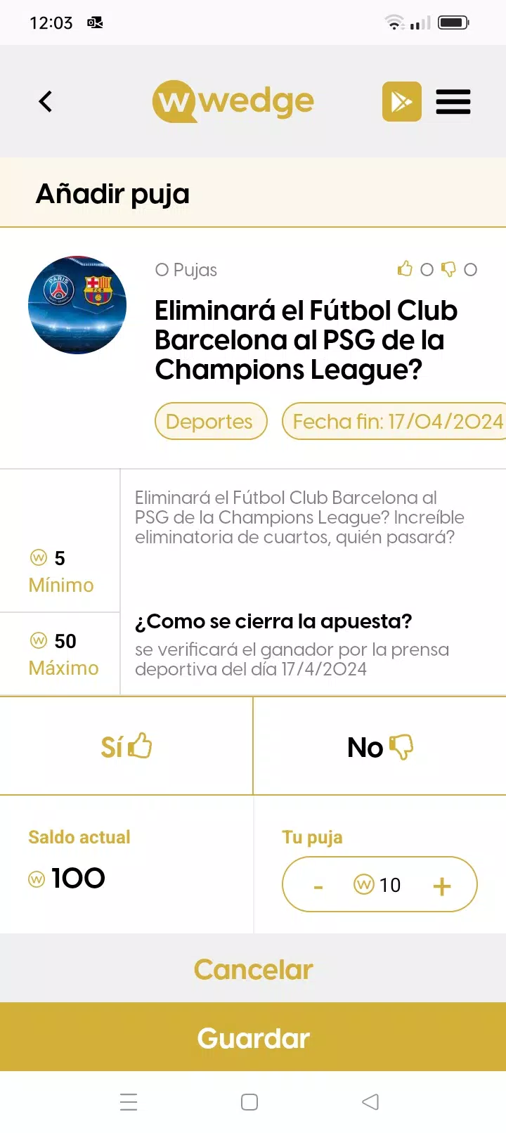 Step into the world of online betting without the risk of losing real money with WEDGE! This innovative app allows you to make sports predictions and bet on a variety of current events, from politics to celebrity gossip. Compete with friends and other users to see who has the best prediction skills and track your progress with detailed statistics. With a safe and fun environment, WEDGE offers an exciting way to enjoy the thrill of online betting without the financial stakes. Join the community today and start experiencing the best in virtual sports betting and predictions.
