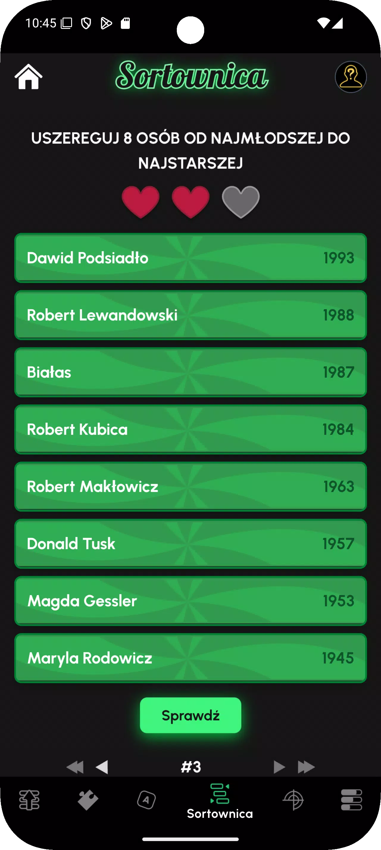 Looking for a fun and challenging way to test your knowledge and skills? Look no further than ZagrajMy! With a variety of game modes to choose from, including sorting, guessing popular words, and identifying influencers, there's something for everyone. Whether you enjoy trivia, puzzles, or word games, this app has got you covered. Put your brain to the test and see how well you can do in each round. But beware, one wrong move could cost you, so think strategically and wisely. Download ZagrajMy today and start playing your favorite game mode!