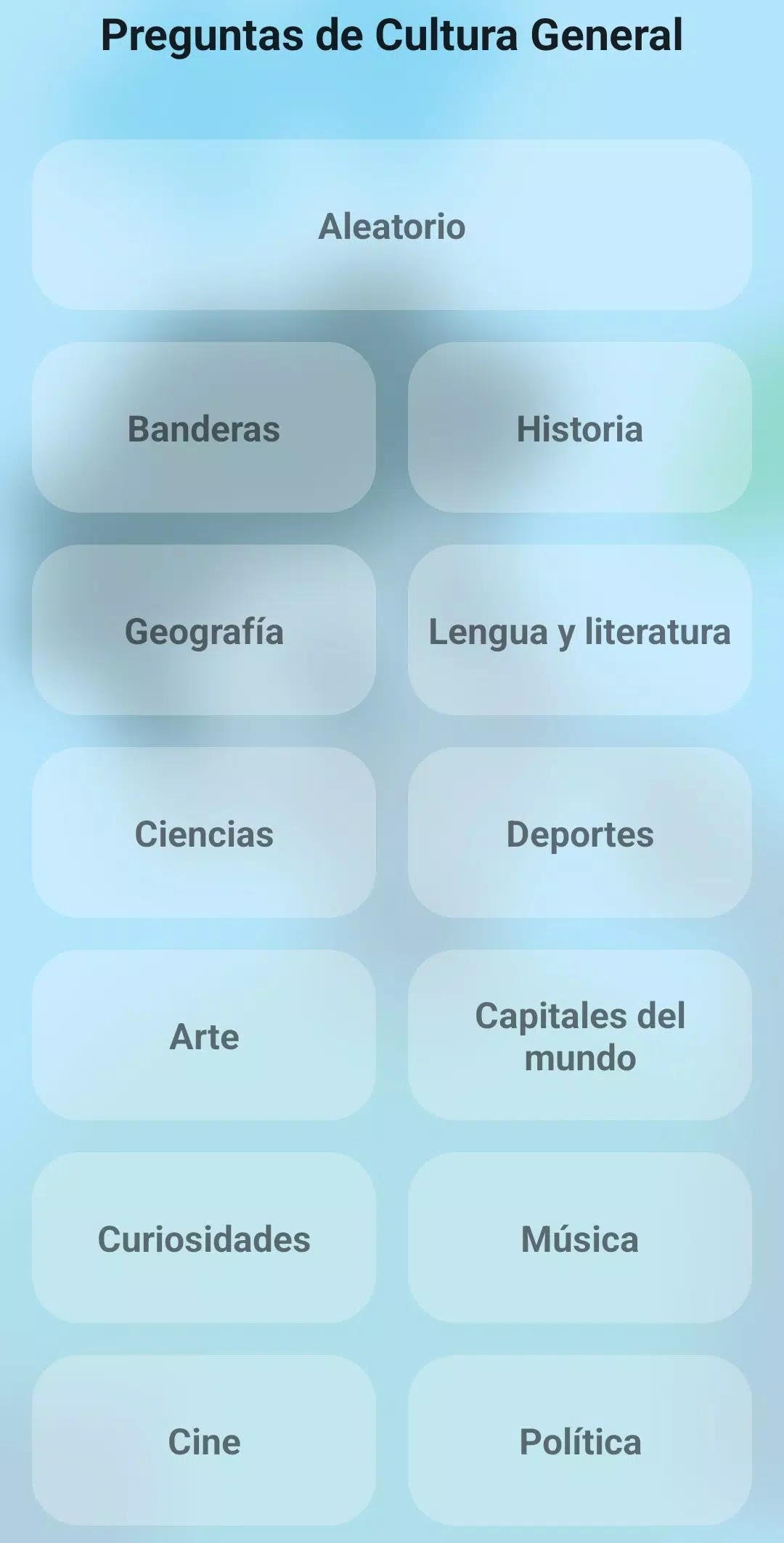 Wide Range of Categories: Preguntas de Cultura General covers topics such as Geography, History, Art, Literature, Sciences, Sport, Music, and more. With such a variety of categories, there is something for everyone to enjoy and learn from.