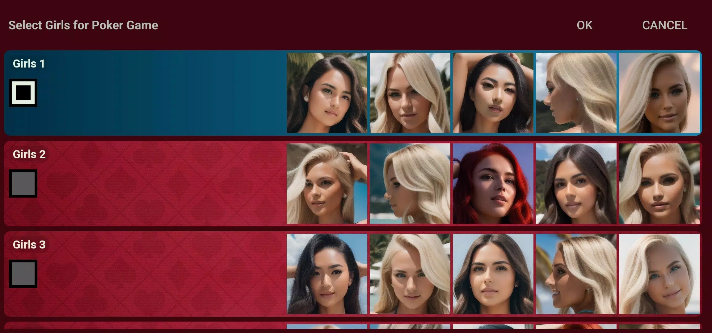 Stunning AI Girls: Bikini Girls Poker features 25 gorgeous AI girls from around the world, each bringing their unique charm and allure to the poker table.