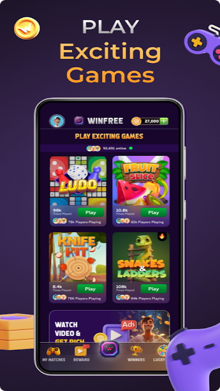 (2) Earn WinCoins Instantly: Play mini-games and complete challenges to collect WinCoins and unlock rewards.