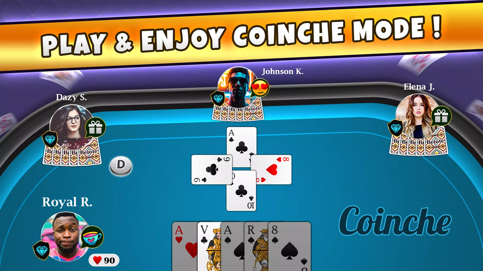 Belote Coinche Online Game apk delivers authentic French card gameplay with smooth controls and immersive strategy. Experience the thrill of Belote and Coinche in real-time matches against players worldwide. Perfect for casual strategists and competitive card enthusiasts alike, this game blends skill, tactics, and social interaction seamlessly. Join millions of players, form alliances, and see if you have what it takes to dominate the tables in Belote Coinche Online Game apk.