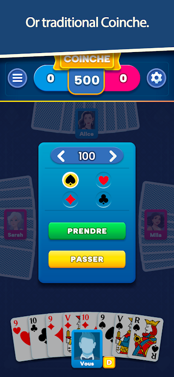 (3) Smart Bidding System: Experience the thrill of Coinche bidding, where skillful calls and bold contracts decide your fate at the table.