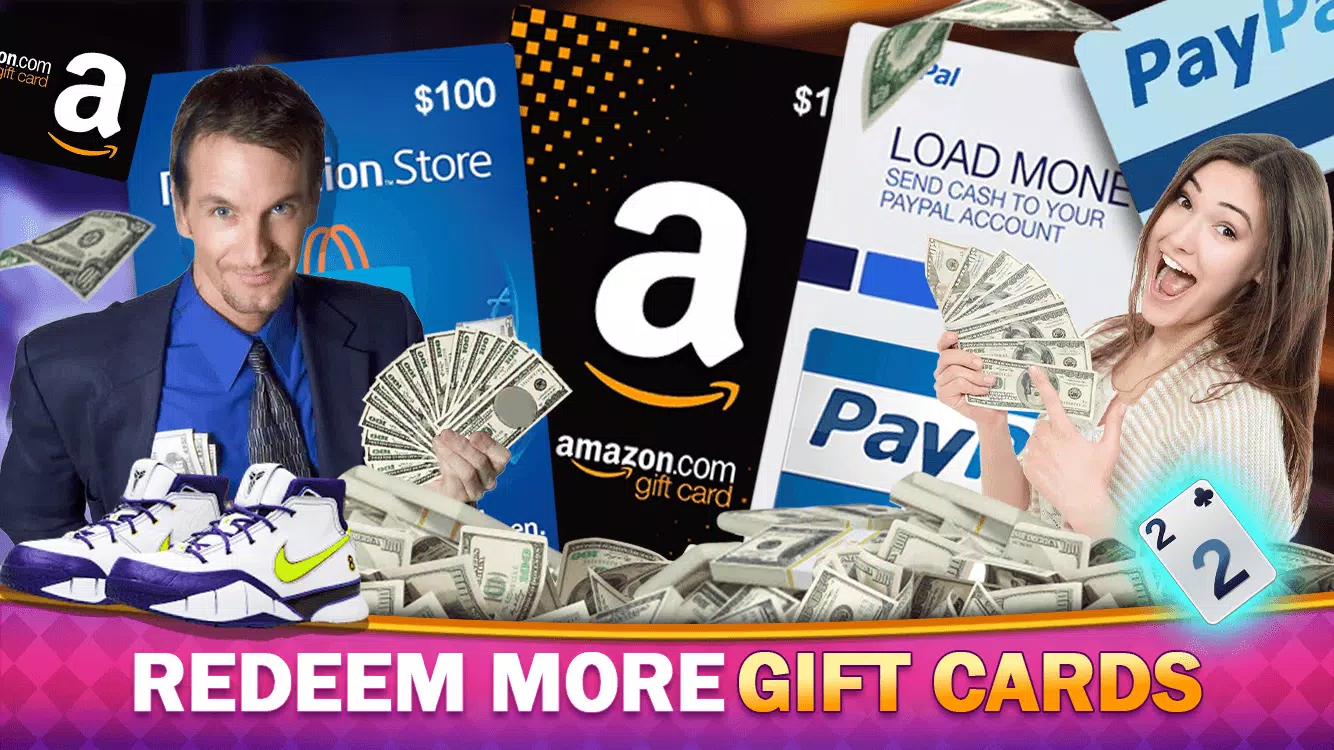 Bounty Solitaire: Money Games combines the classic enjoyment of Solitaire with exciting opportunities to win real rewards. Players can strategize their moves, uncover hidden gift cards, spin slot machines, and participate in ticket draws to earn money credits, Amazon credits, or coins. With thoughtful gameplay and clever use of power-ups, Bounty Solitaire adds an extra layer of fun and reward to a timeless card game. Download now to test your Solitaire skills and start winning!