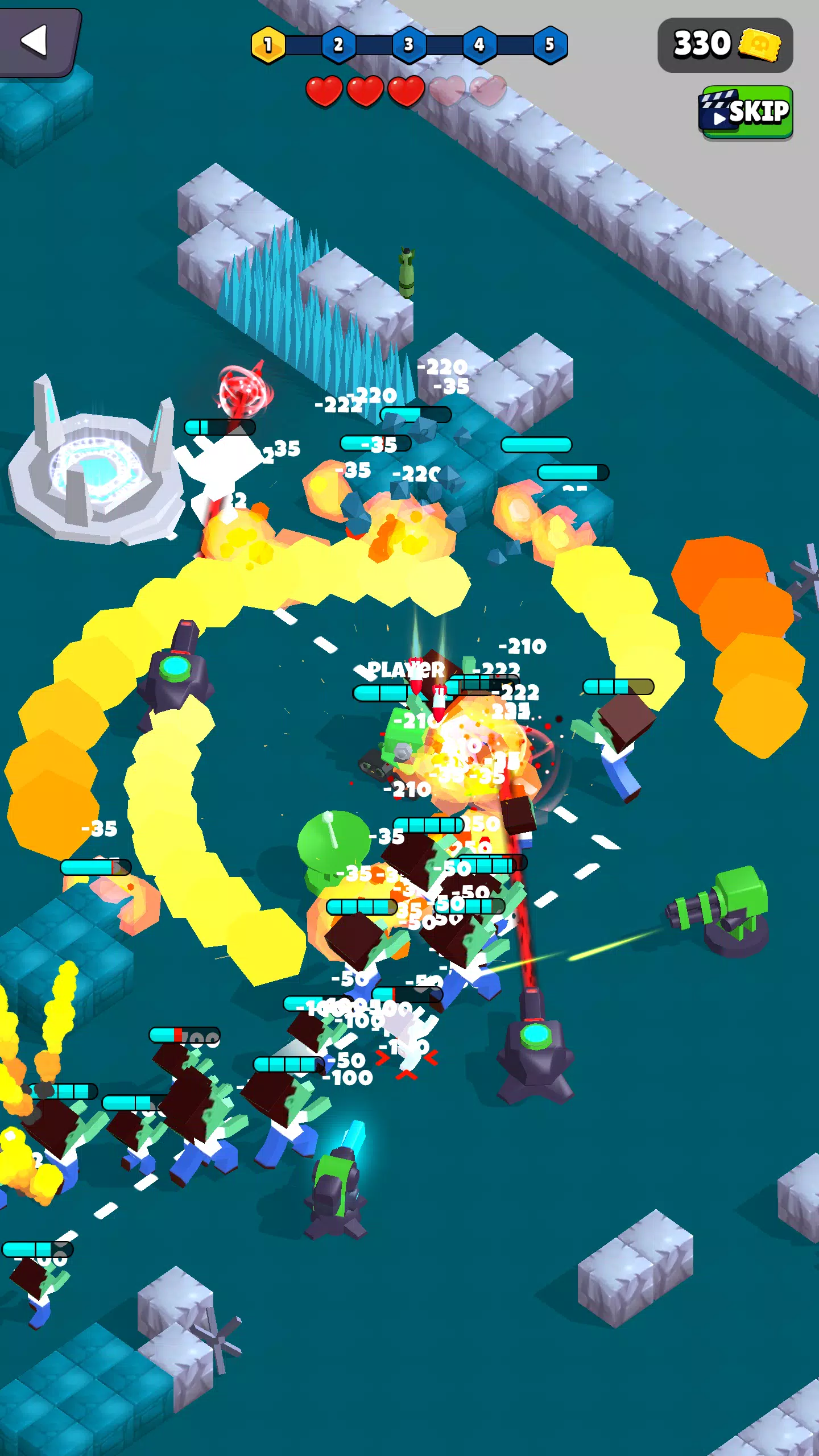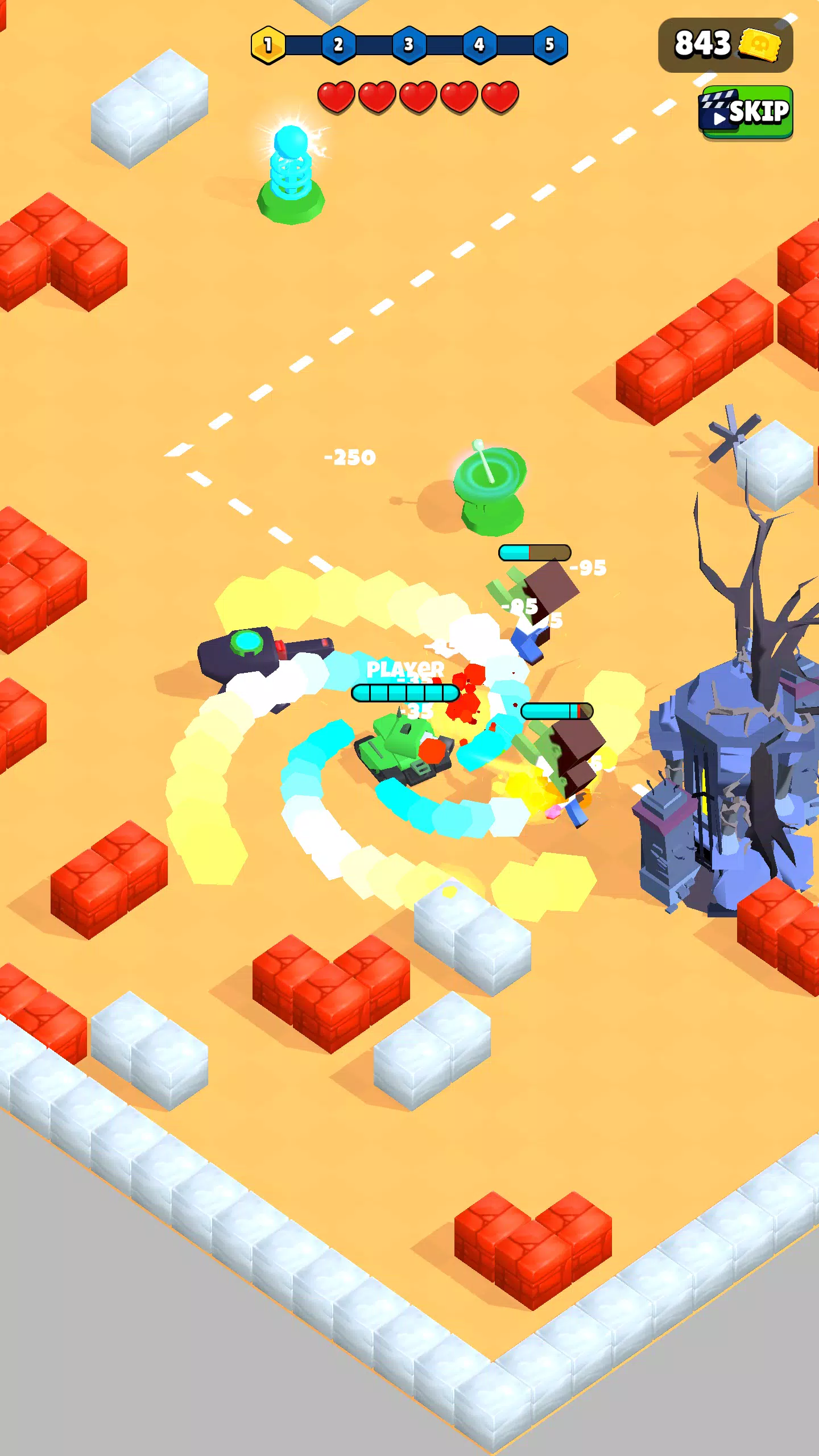 Stay active during battles by controlling your tank and supporting your towers with high-damage skills.