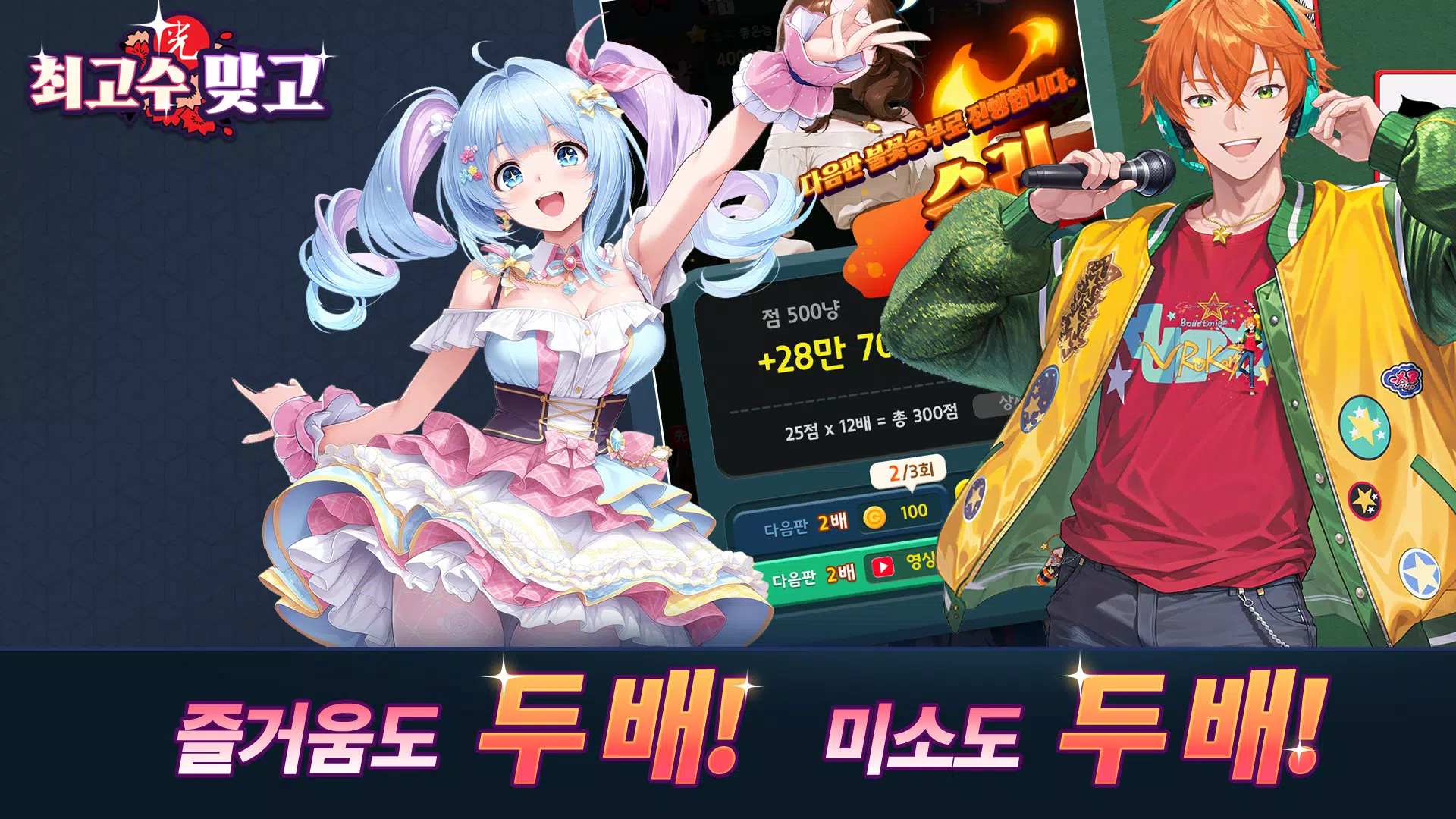 최고수맞고 (Choi Go Su Mat Go) is an exciting and strategic Korean card game that challenges players to outwit their opponents in a fast-paced and competitive environment. Based on the classic "Matgo" card game, it is a popular game that combines skill, luck, and strategy. Players compete to score points by forming sets and sequences with the cards they are dealt, using their abilities to predict and counter their opponents’ moves. With vibrant graphics, smooth gameplay, and traditional Korean influences, 최고수맞고 provides an engaging experience for card game enthusiasts and newcomers alike.