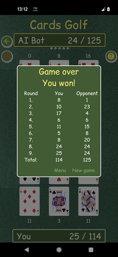 Cards Golf is a fun and engaging card game that blends strategy and simplicity, offering an enjoyable experience for players who love easy-to-learn yet challenging games. Whether you’re playing alone or competing against friends, the game provides hours of entertainment with its variety of modes, beautiful graphics, and strategic gameplay. With its focus on discarding cards efficiently to achieve the lowest score, Cards Golf is perfect for casual gamers looking for a quick and relaxing game to enjoy on the go. It’s a great addition to any mobile gamer’s collection, providing endless replayability and fun.