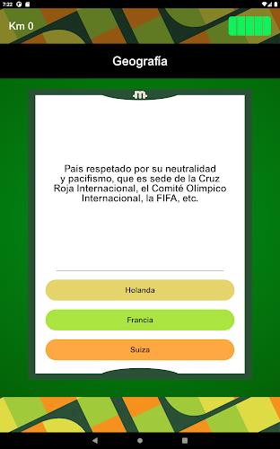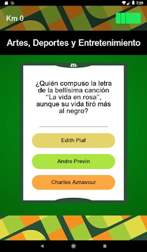 The core experience centers on answering questions to advance a token along a race track. In Solitario you start with five energy bars, lose one on each mistake and regain one after three consecutive correct answers while trying to complete 21 km or 42 km distances. Multijugador supports 2–4 people and gives each turn a chance to build streaks: a player answers until making an error or reaching six consecutive correct answers. A unique wrinkle is the black token of Ignorancia that advances if everyone fails the first question of a turn, adding a communal risk to each round.