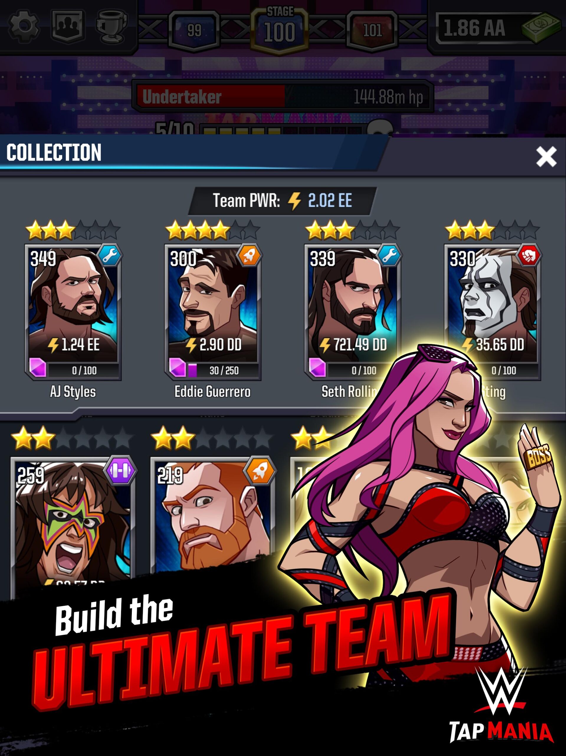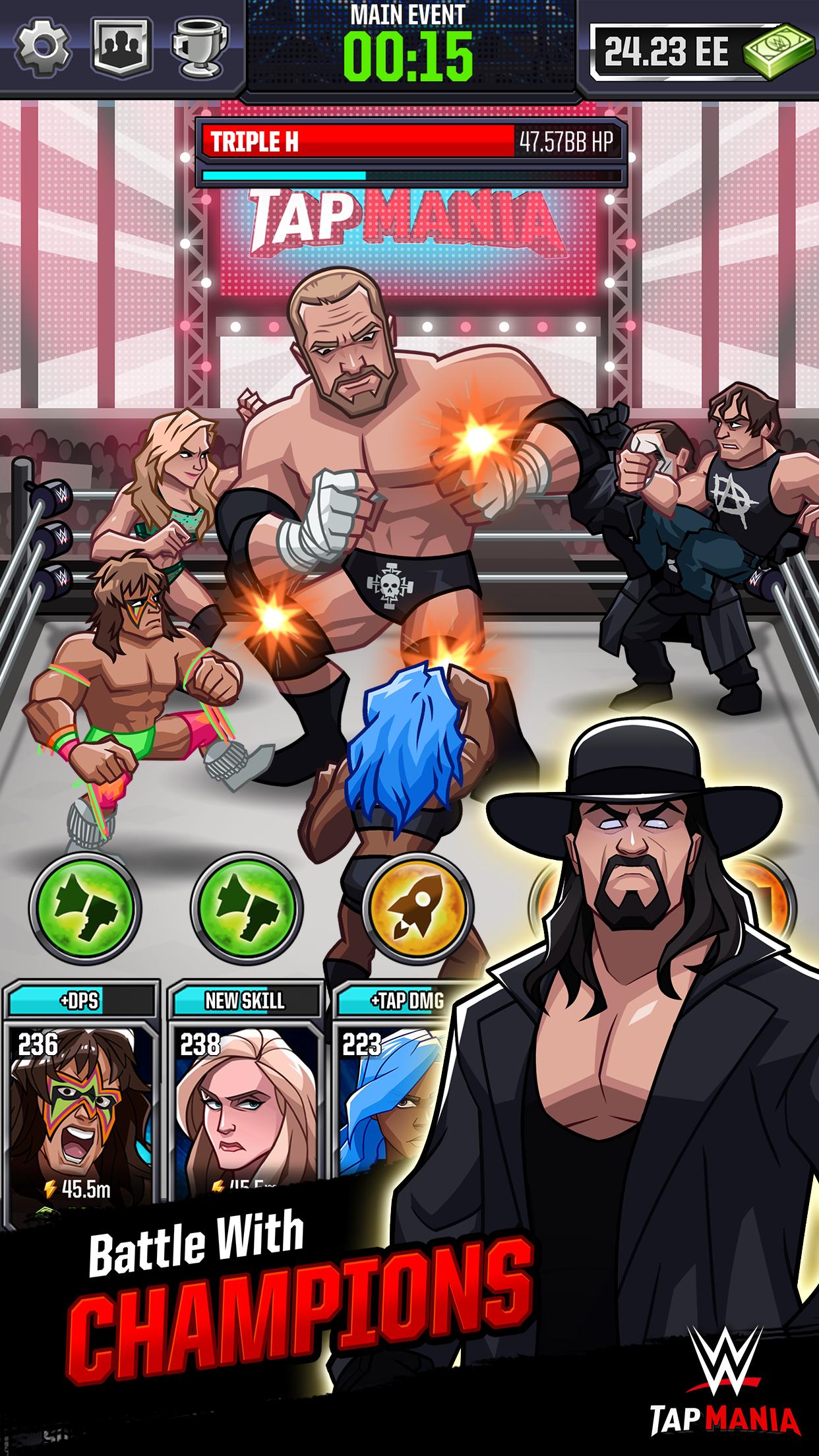 Tap Mania brings WWE action to a fast-paced tap battler where players collect Superstars, build teams and crush opponents with signature moves. This mobile-friendly game mixes simple one-touch combat with deeper team-building—collect cards that span WWE legends to modern icons, level up abilities, and exploit type and affinity systems to craft winning lineups. Authentic commentary from Michael Cole and Corey Graves and live events modeled on RAW, SmackDown Live and major pay-per-views add presentation polish, while idle rewards keep progress moving when you’re away. Fans who want quick matches with strategic depth will find Tap Mania compelling.