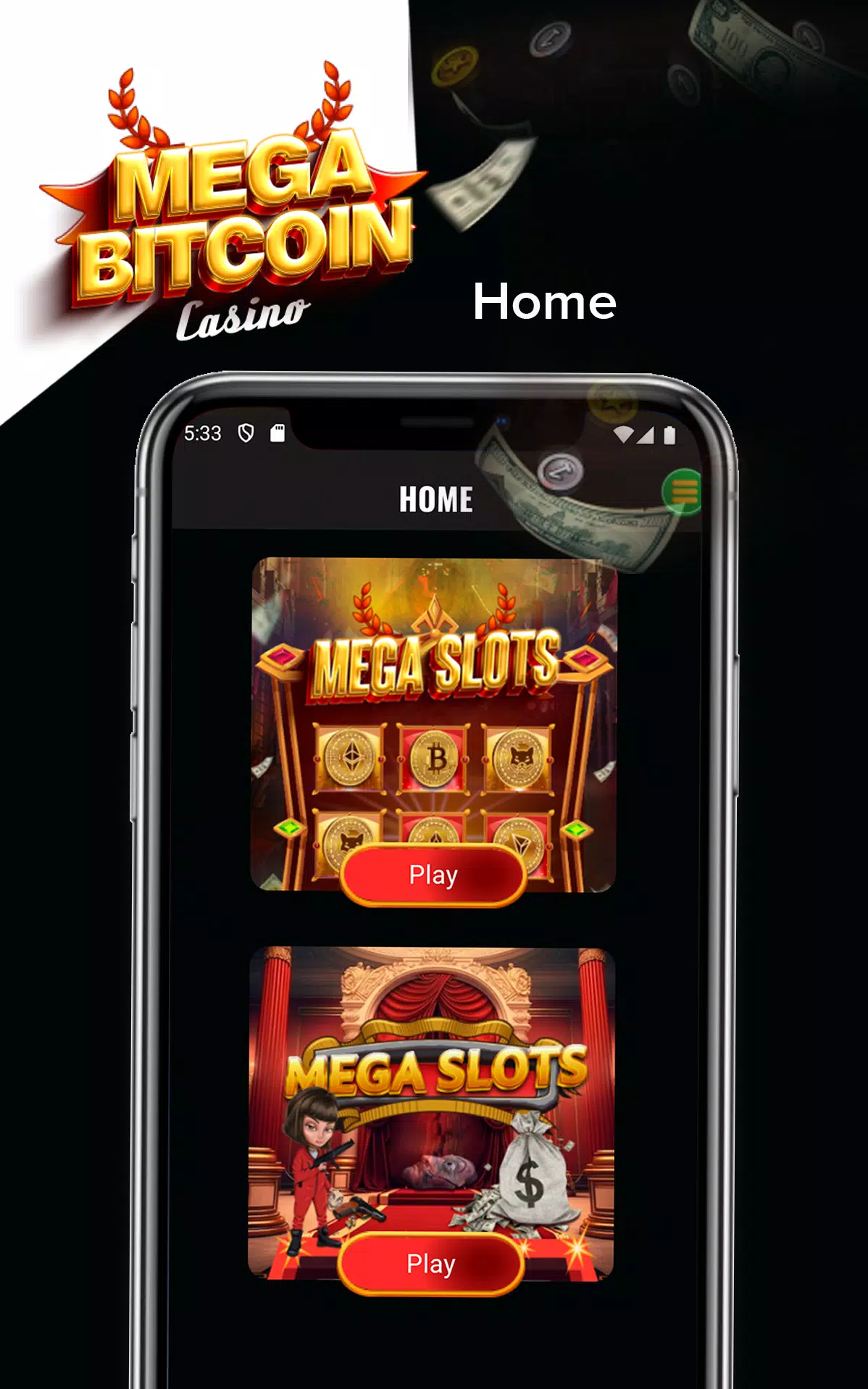Mega Bitcoin Casino is a mobile Android app for playing Bitcoin-based casino games. Mega Bitcoin Casino provides slots, roulette, blackjack and tournament play with an integrated Bitcoin wallet and tools for responsible play.