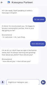 Akıllı Konuşma is an AI-powered mobile app that helps users practice spoken English through natural conversation and targeted feedback. The app lets you speak or type sentences and receive quick, realistic responses while highlighting mistakes and offering explanations for vocabulary and grammar you do not understand. It stores past conversations and recordings so you can review progress and uses a clean, easy-to-use interface designed for daily practice.